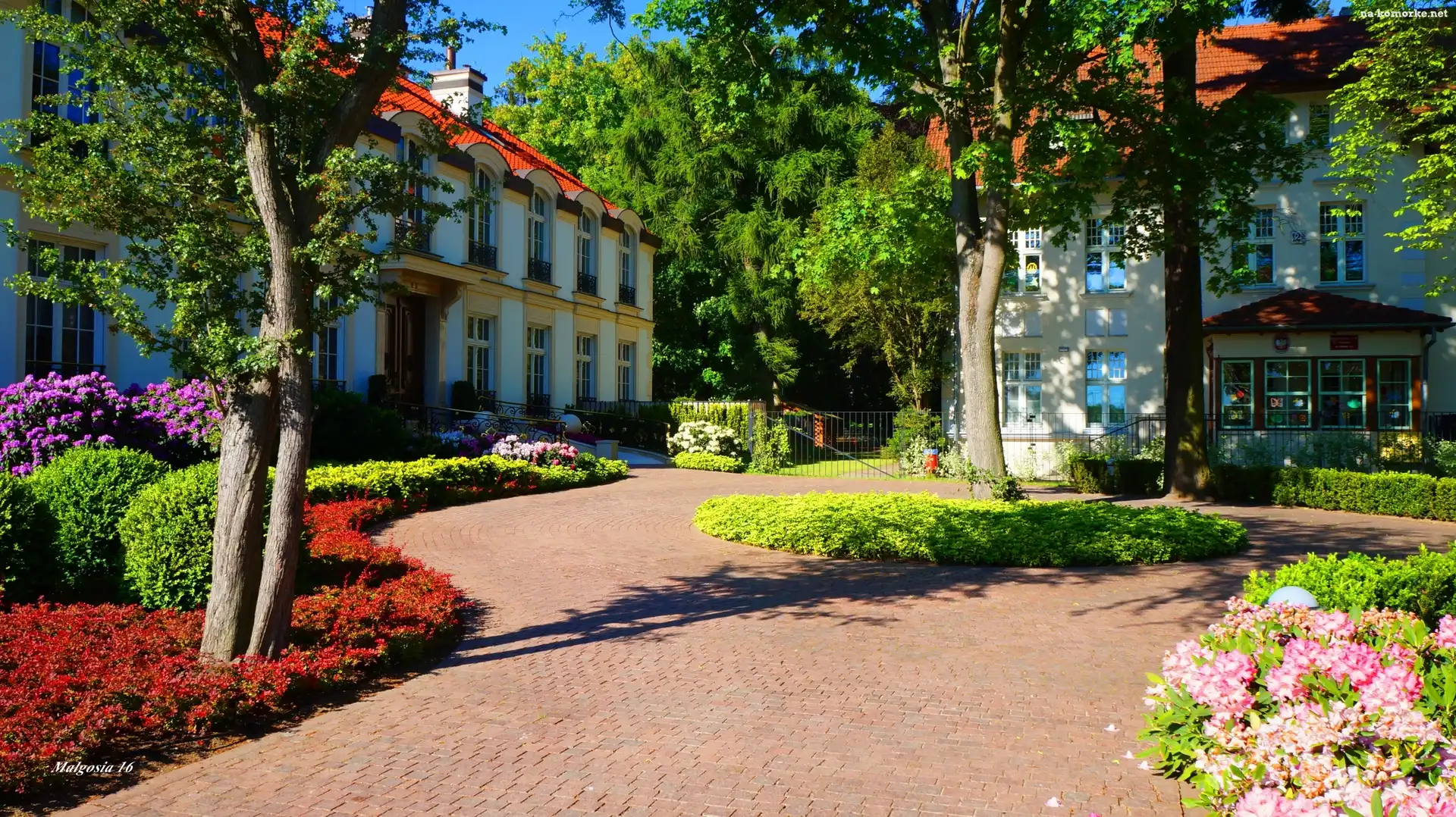 Polska, Dworek, Ogród, Gdańsk, Droga, Kwiaty, Alejka, Park Oliwski im. Adama Mickiewicza, Ścieżka, Budynek, Zieleń na Komórkę |