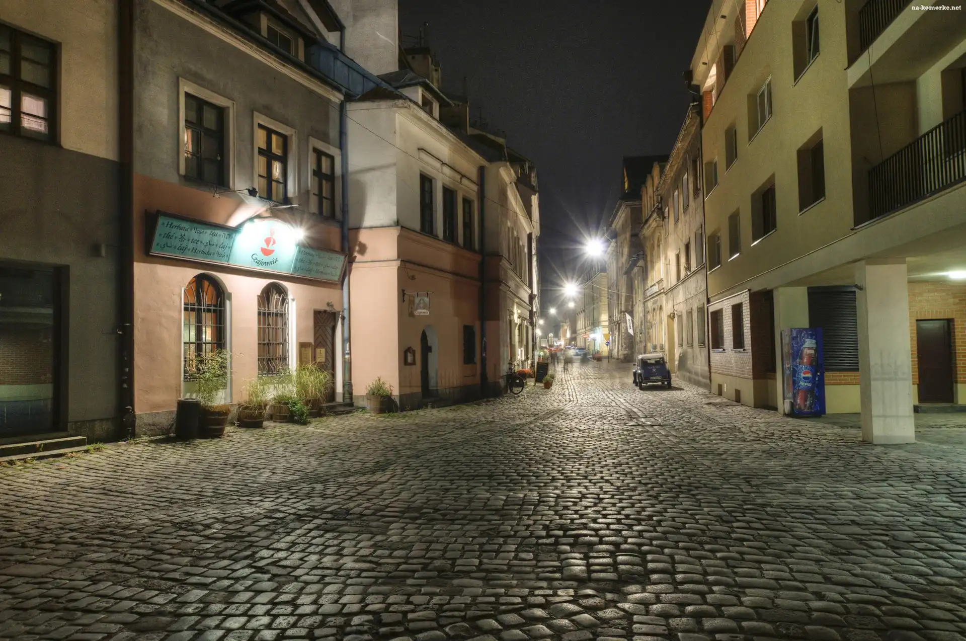 Polska, Budynki, Ulica, Nocą, Kraków na Komórkę