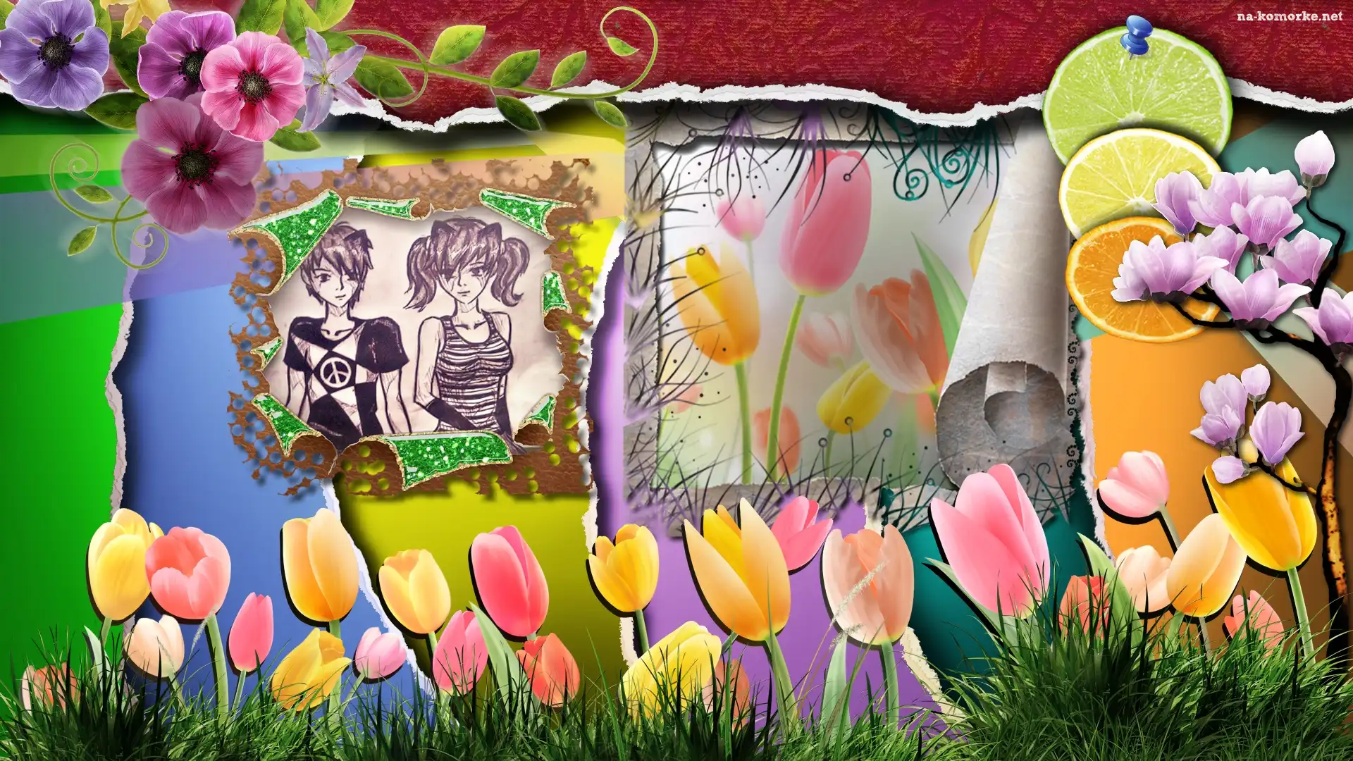 Pomarańcz, Tulipany, Trawa, Kwiaty, Cytryna na Komórkę