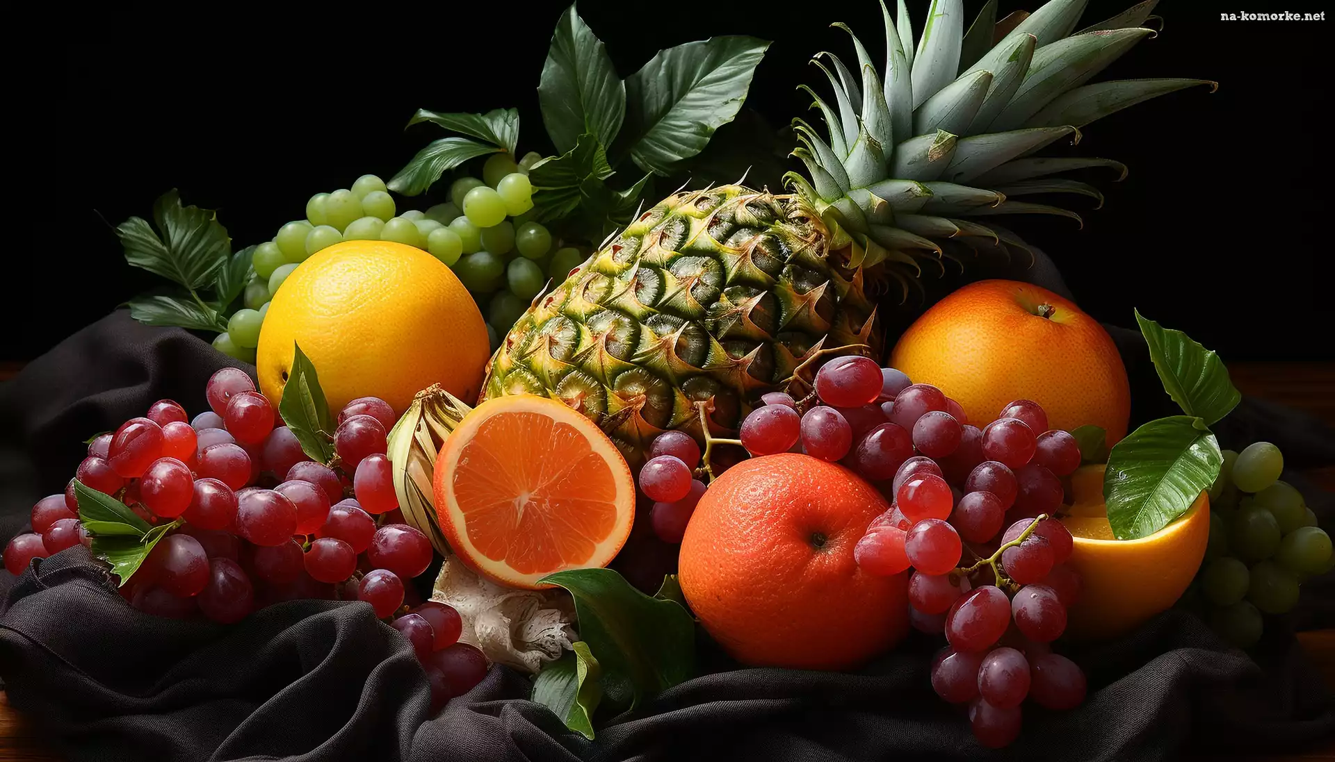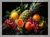 Ananas, Winogrono, Owoce, Pomarańcze, Grafika AI na Komórkę