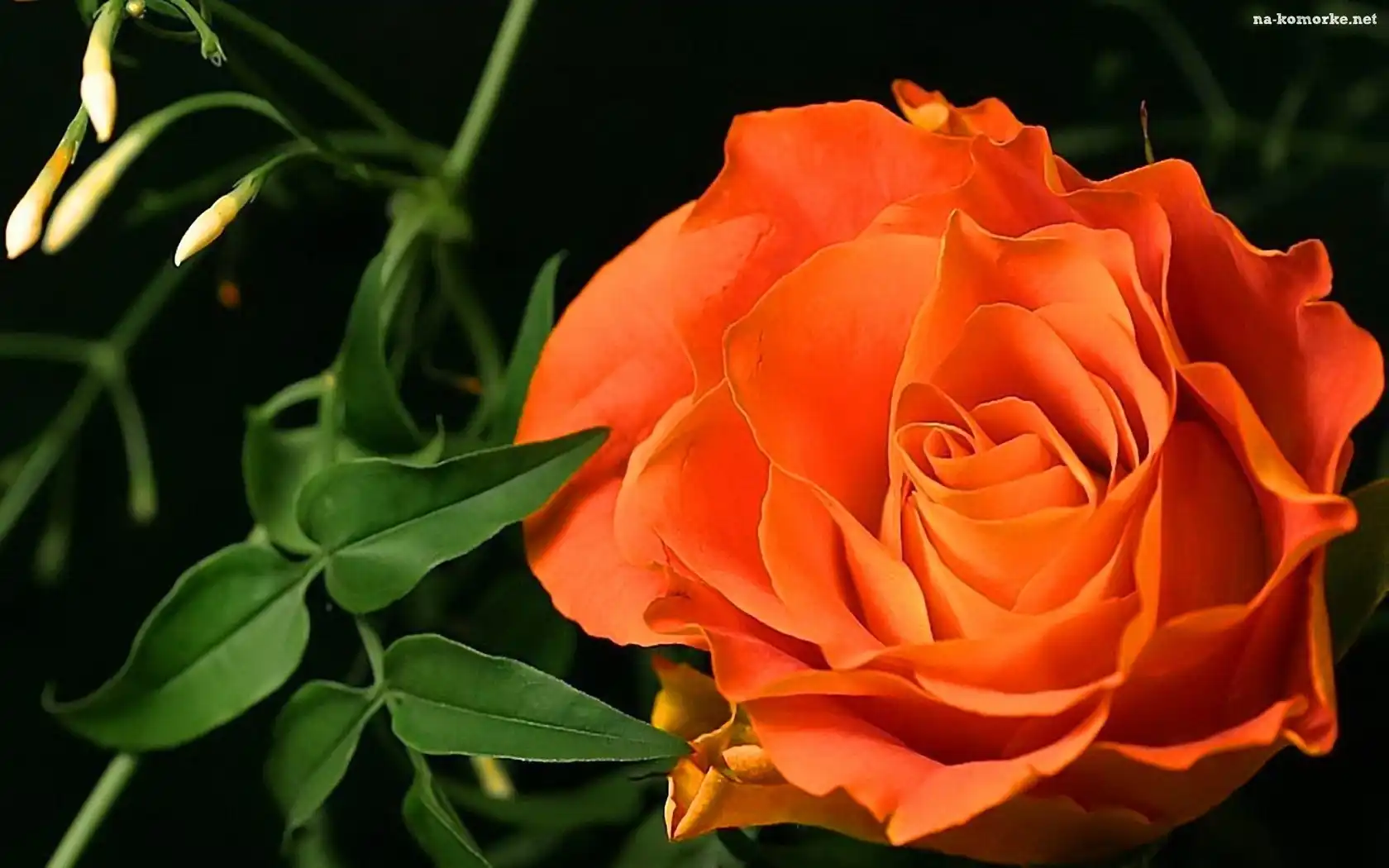 Pomarańczowa, Listki, Róża, Zielone na Komórkę