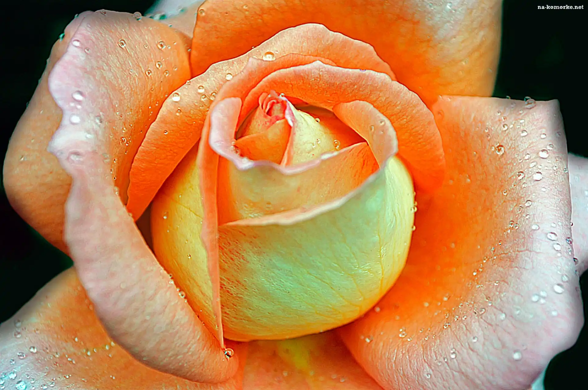 Pomarańczowa, Wody, Róża, Krople na Komórkę