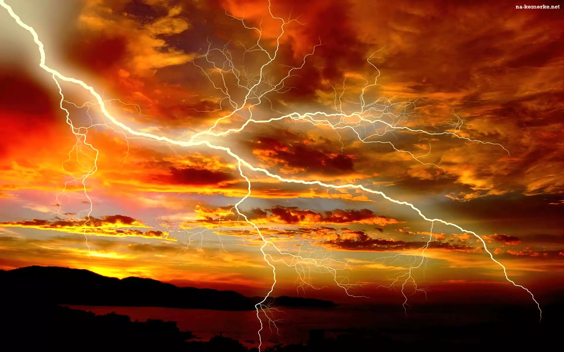 Pomarańczowe, Błyskawica, Chmury, Piękna na Komórkę