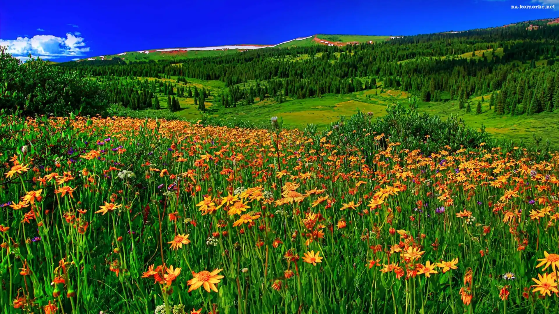 Łąka, Drzewa, Pomarańczowe, Kwiaty na Komórkę