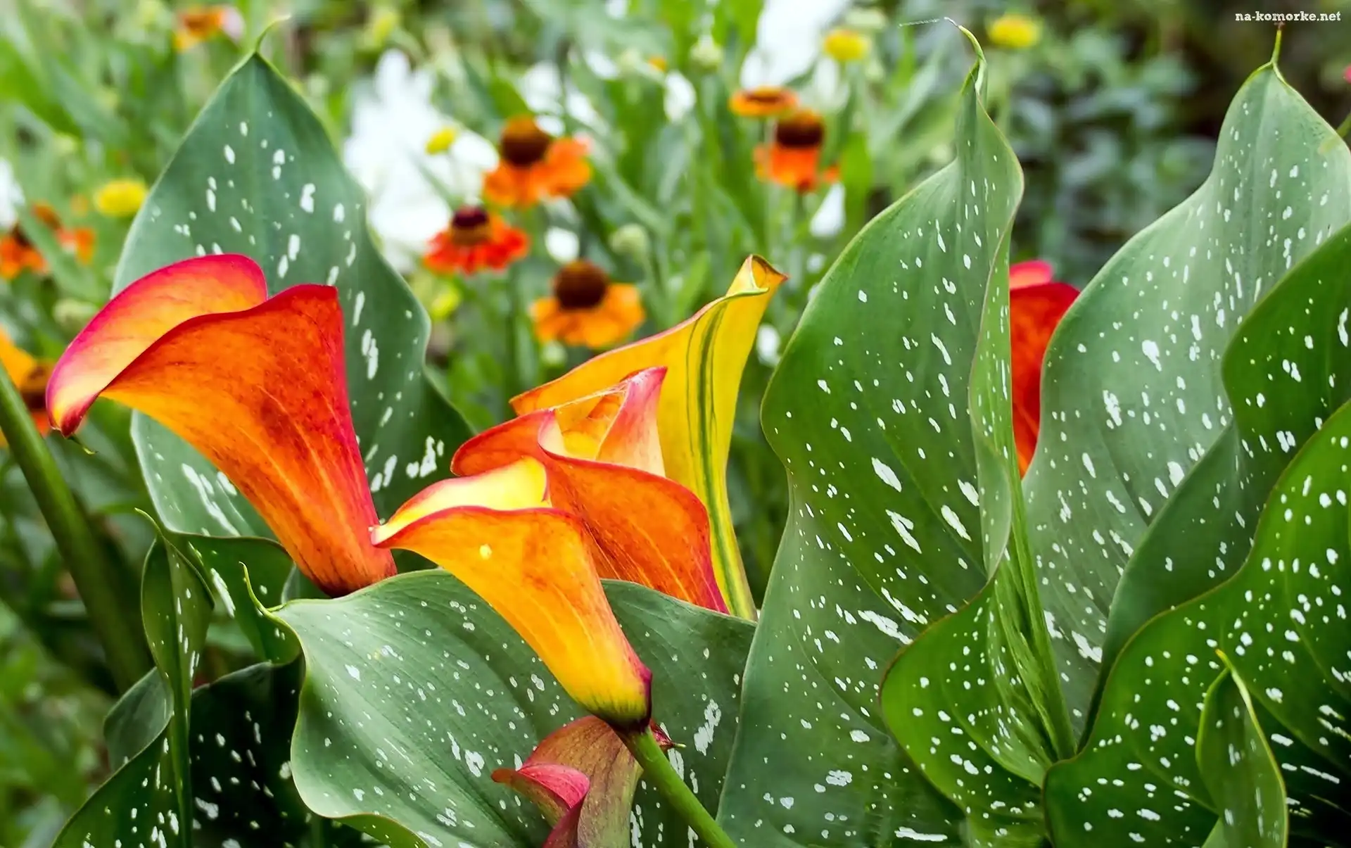Pomarańczowe, Ogród, Kalie, Liście na Komórkę