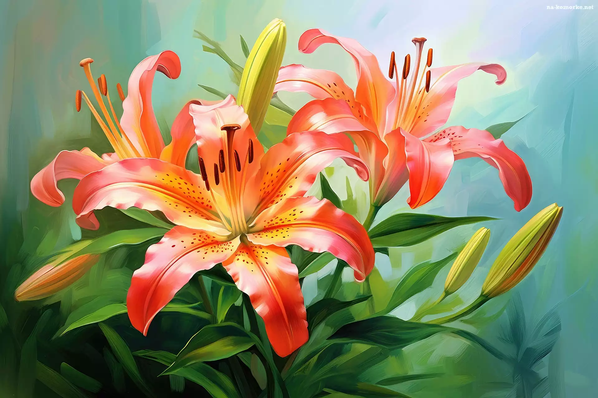 Kwiaty, Grafika, Lilie, Pomarańczowe na Komórkę