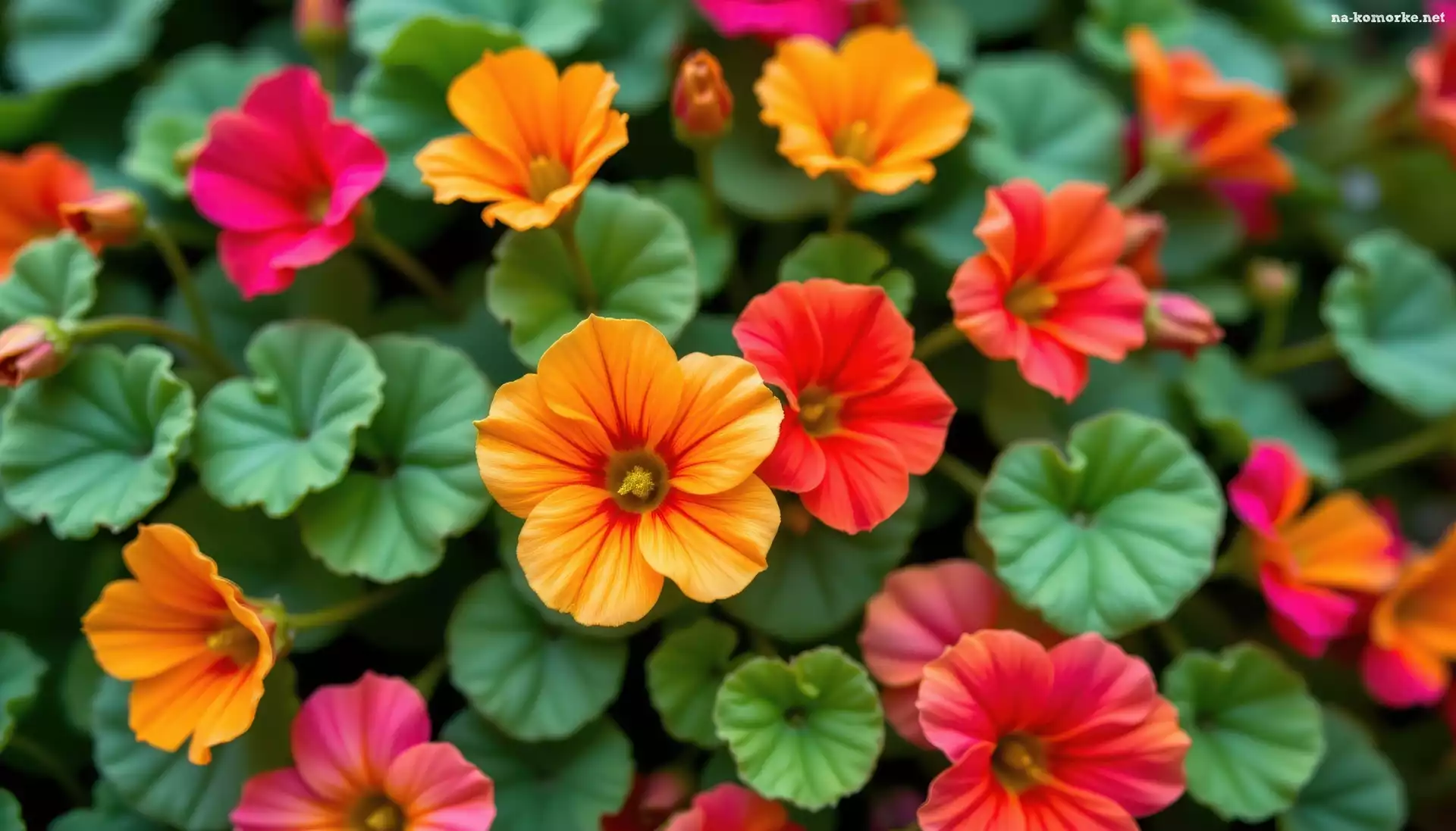 Nasturcje, Liście, Czerwone, Pomarańczowe na Komórkę