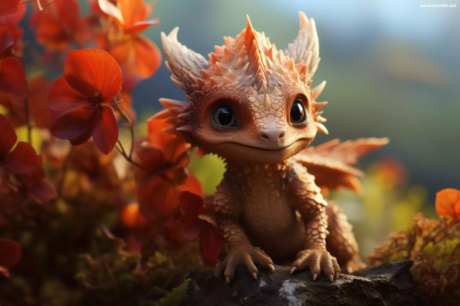 Mały, Pomarańczowe, Rośliny, Smok, Grafika na Komórkę