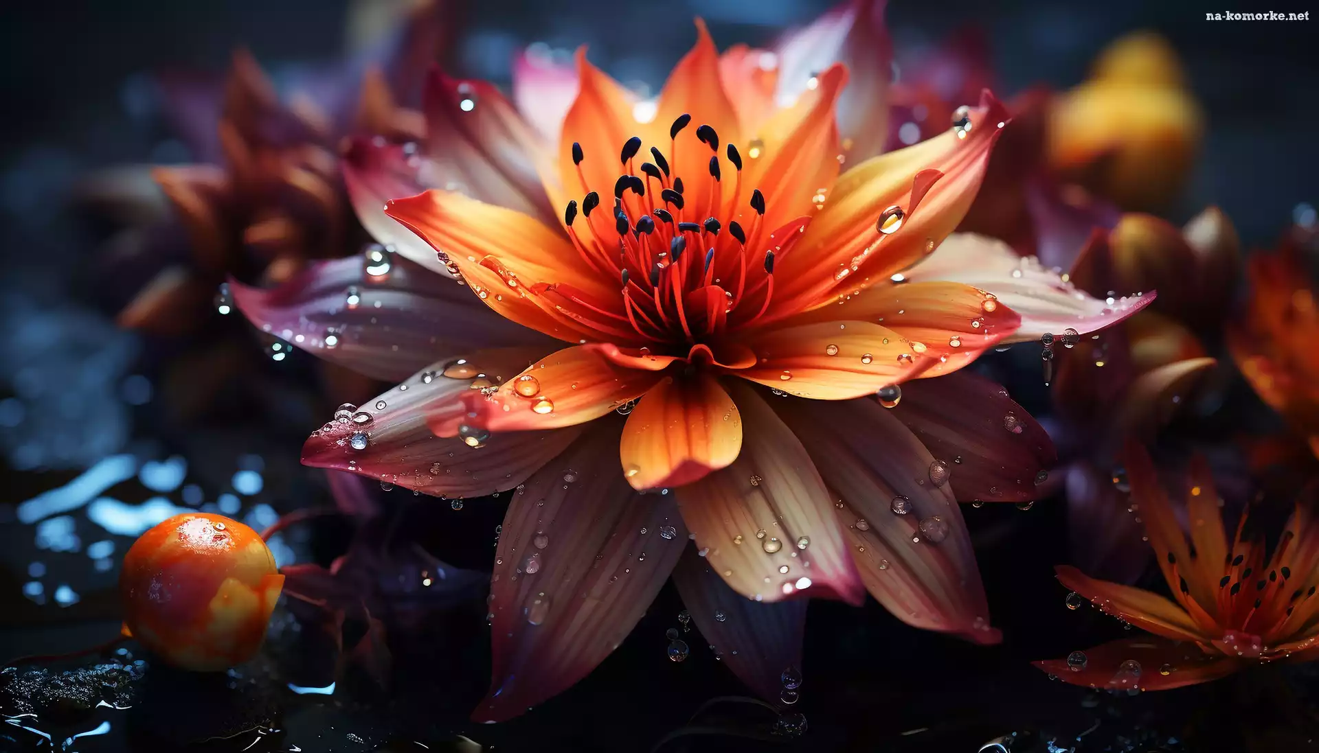 Krople, Grafika, Kwiat, Pomarańczowy na Komórkę