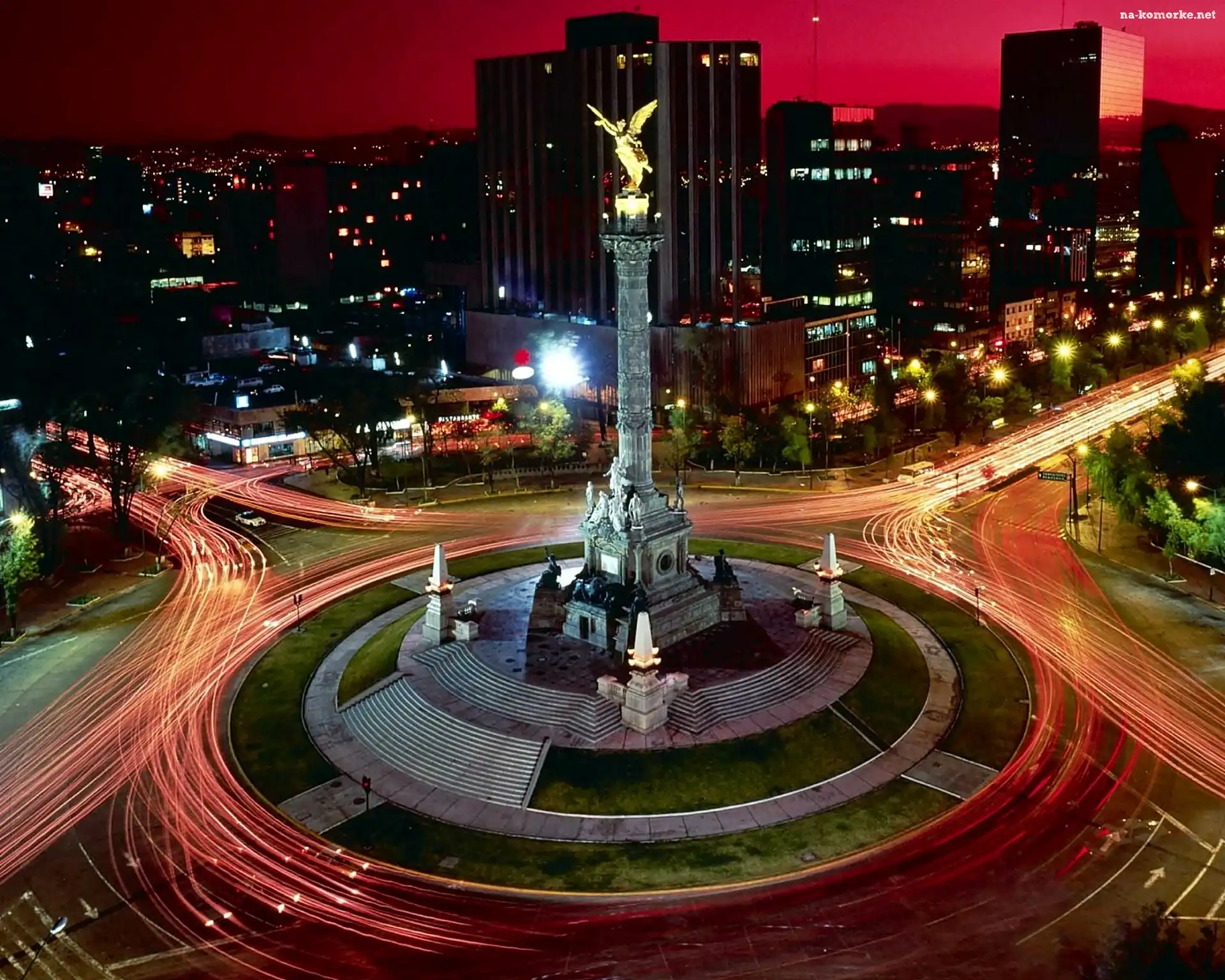 Meksyk, Pomnik, Anioła, Nocna, Panorama, Miasta, Rondo na Komórkę
