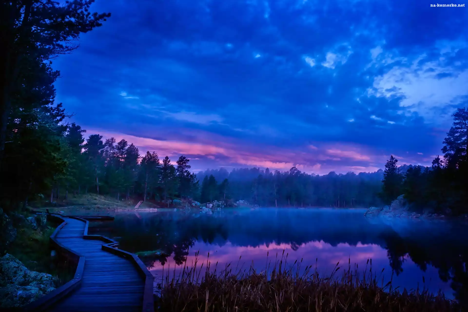 Pomost, Rzeka, Las, Odbicie, Mgła, Świt na Komórkę