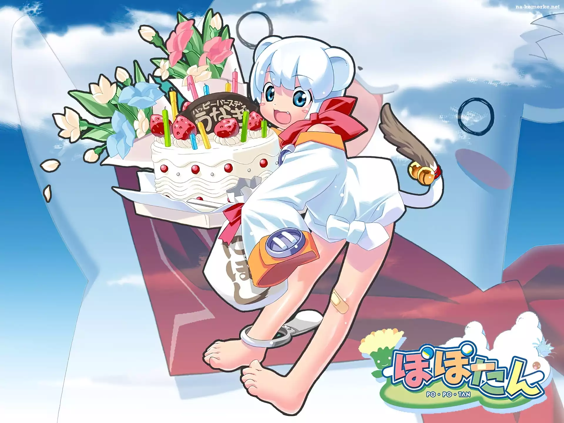 Popotan, kwiaty, kobieta, tort na Komórkę