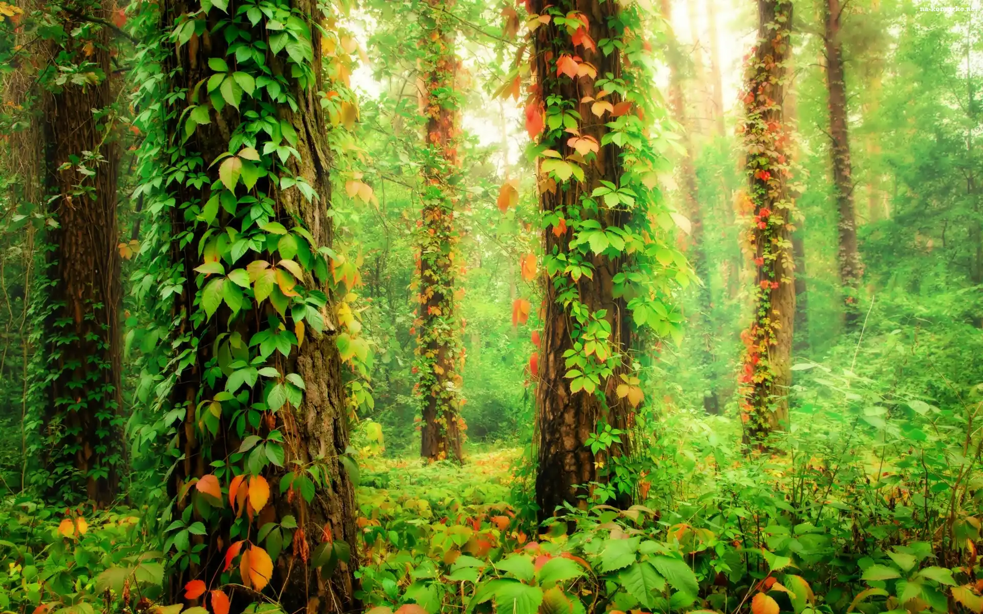 Poranek, Magiczny, Las, Drzewa, Liście na Komórkę