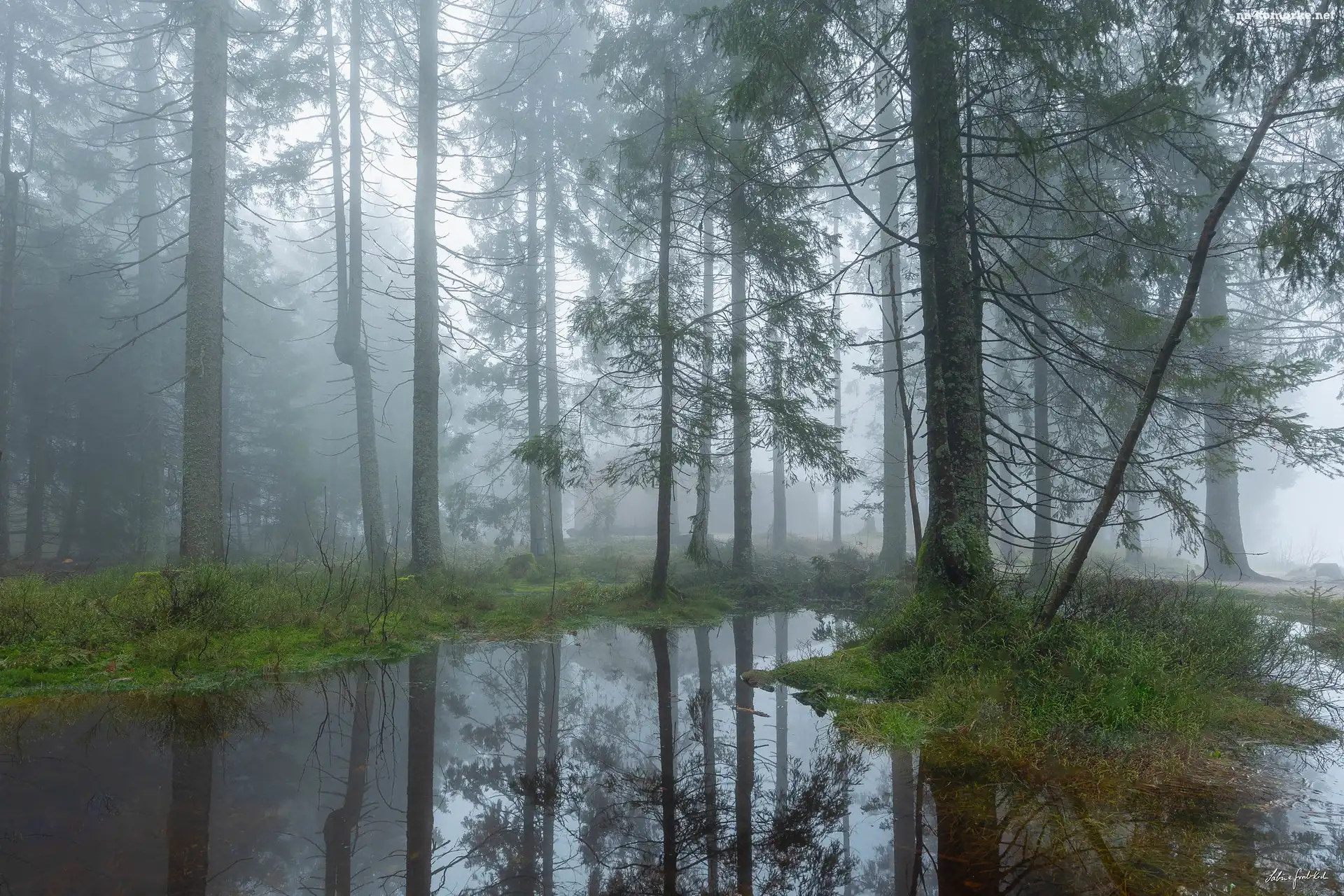 Mgła, Drzewa, Las, Poranek na Komórkę