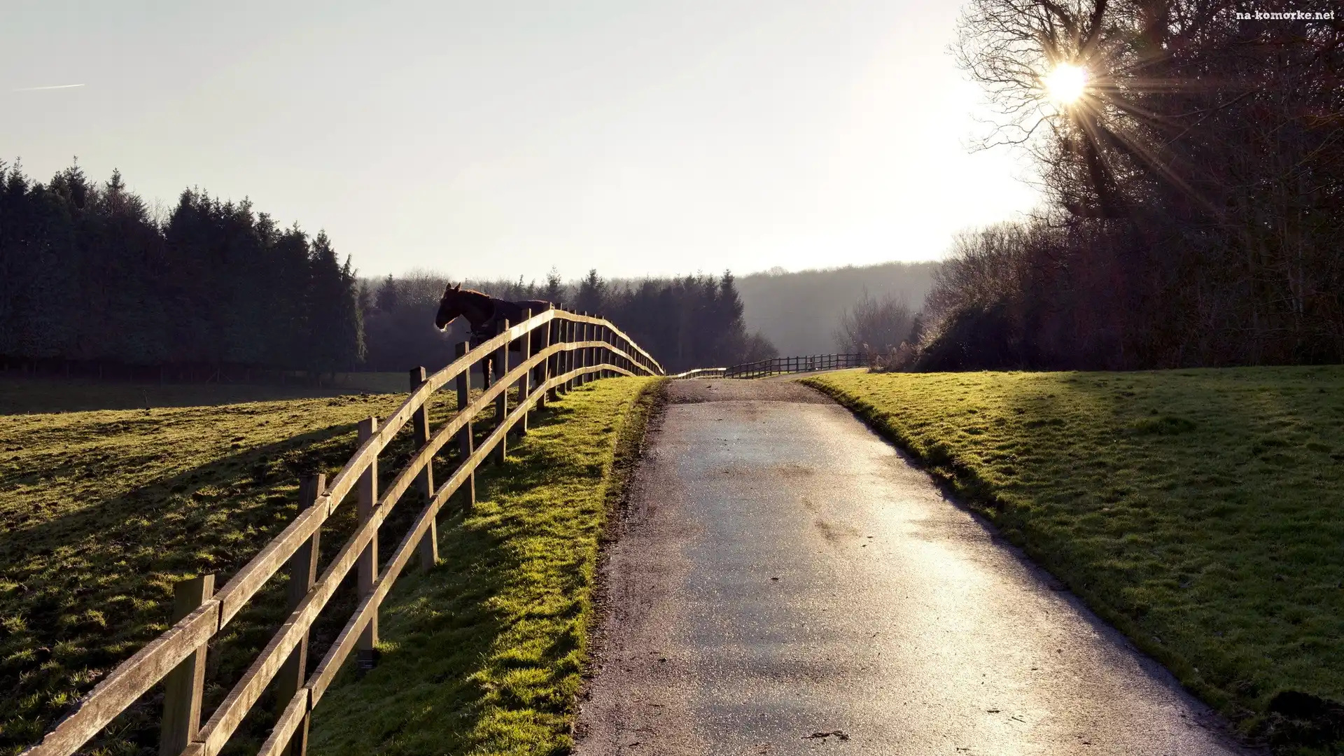 Poranek, Droga, Łąka, Koń, Promienie Słońca na Komórkę