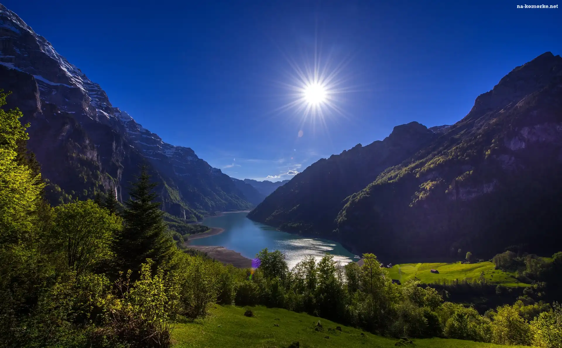 Promienie słońca, Szwajcaria, Góry Alpy, Jezioro Klöntalersee, Poranek Kolorowa, Łąka, Jeziorko Zachód Słońca, Jezioro Góra, Niebo, Księżyc Promienie, Słoneczne, Zachód Zima, Las, Choinki Góry, Rzeka, Dolina Szwajcaria, Góra, Drzewa Morskie, Polska, Oko Alpy, Chmury, Góry Góry, Las Drzewa, Góry Alpy, Jezioro Seealpsee, Szwajcaria, Kamienie, Kanton Appenzell Innerrhoden Kamieniste, Jezioro Szwajcaria, Żaglówka, Koń, Jezioro Sils, Góry, Łąka, Łódki