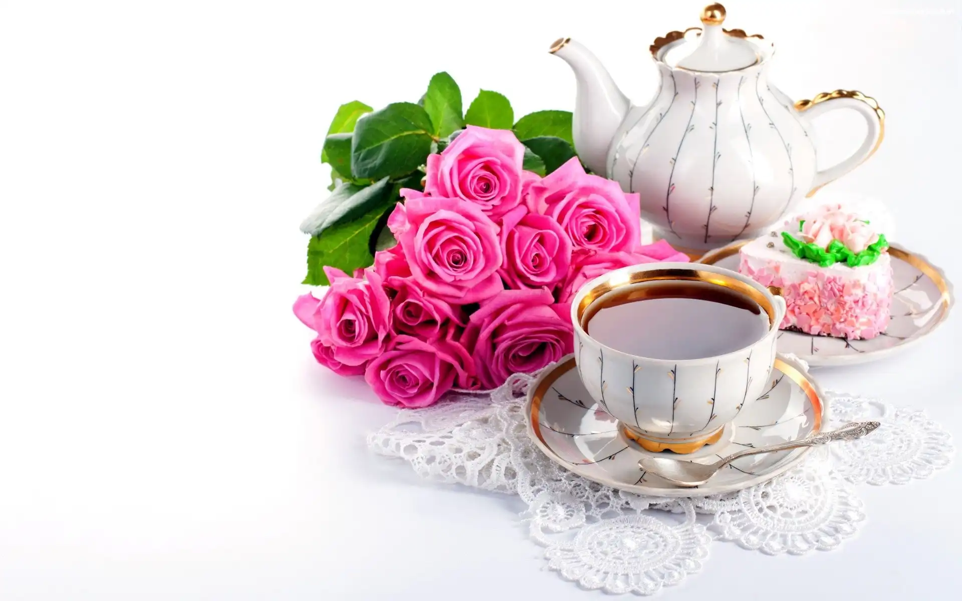 Porcelana, Bukiet, Róż, Ciastko, Herbata na Komórkę