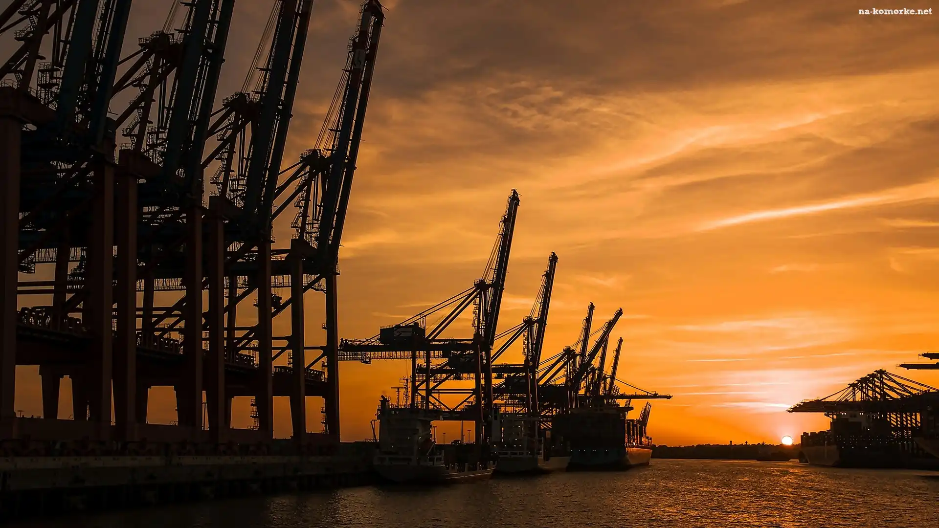 Port, Słońca, Dźwigi, Zachód na Komórkę