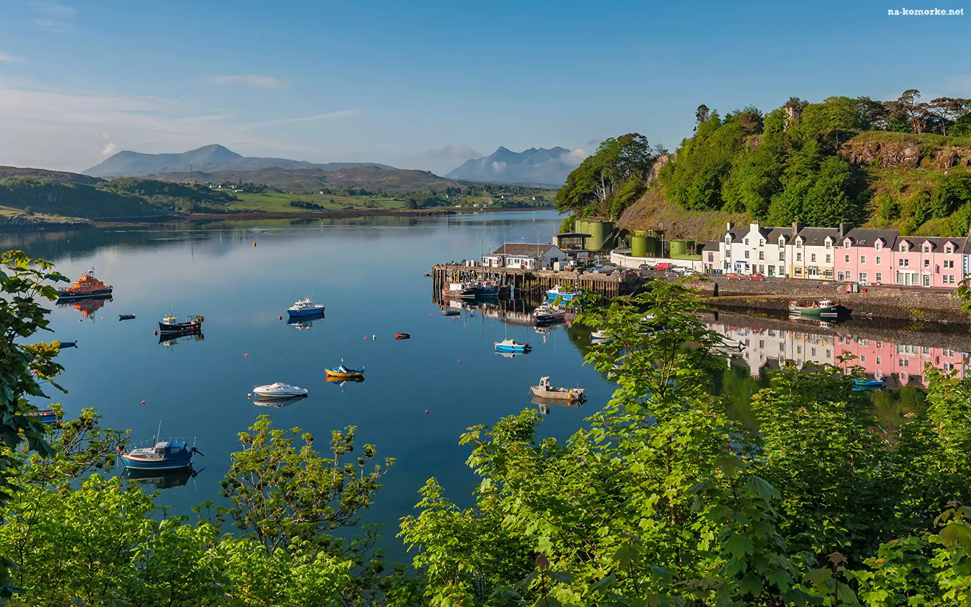 Portree, Zatoka, Domy, Szkocja, Jezioro, Żaglówki, Przystań, Wyspa Skye na Komórkę
