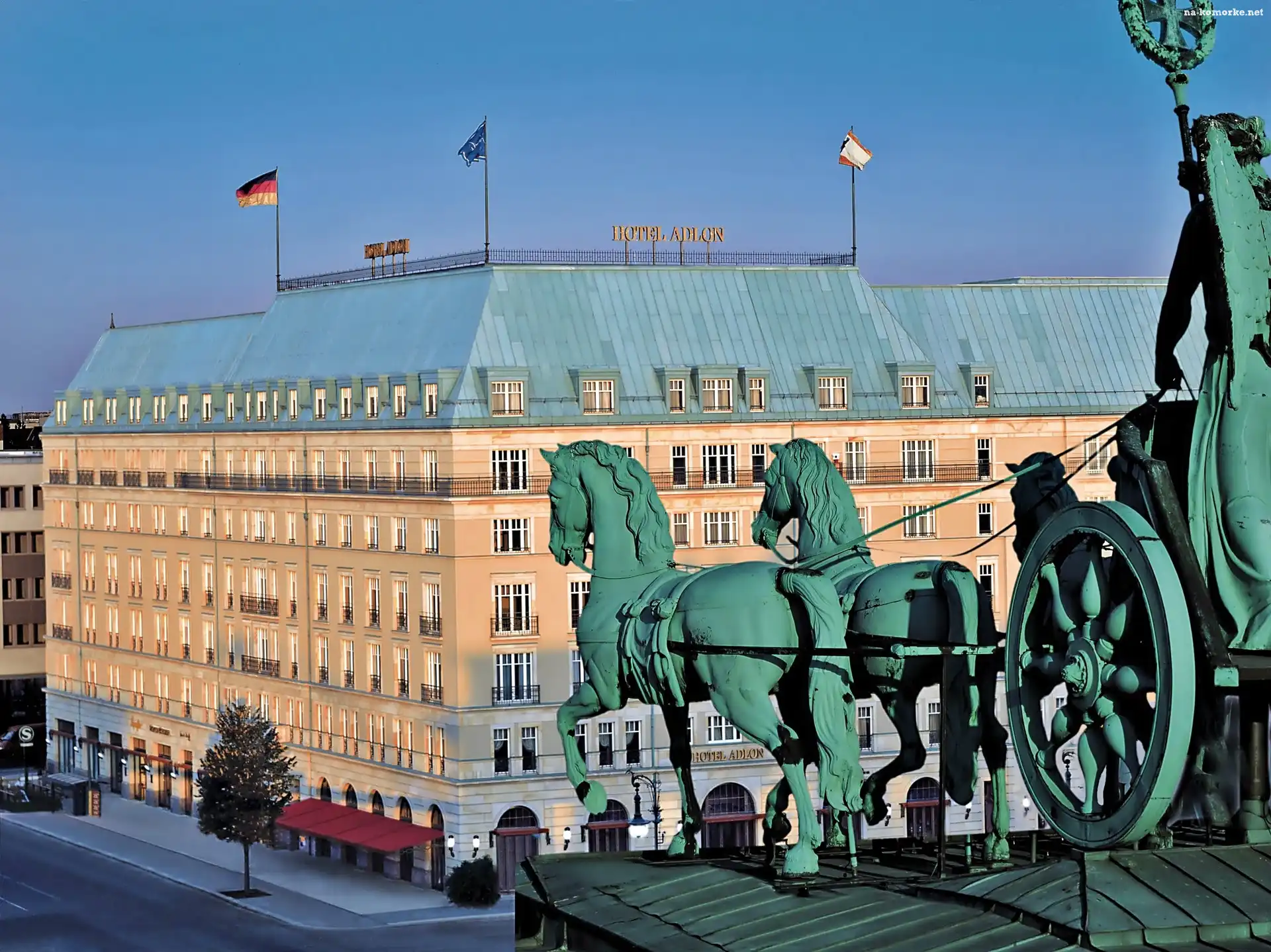 Hotel, Posąg, Świt, Adlon, Widok, Z Bramy, Brandenburskiej na Komórkę