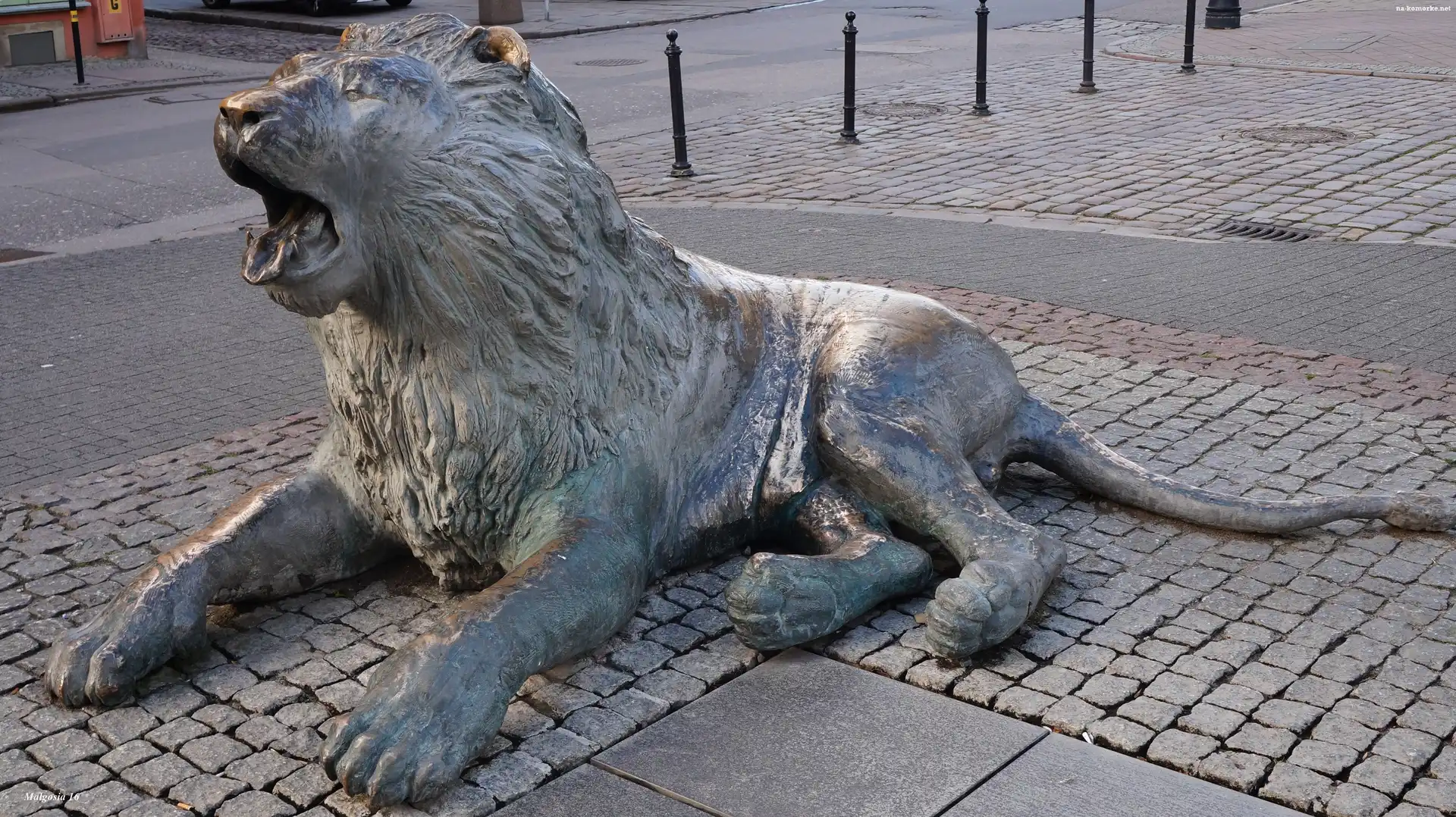 Posąg, Lew, Ulica, Leżący na Komórkę