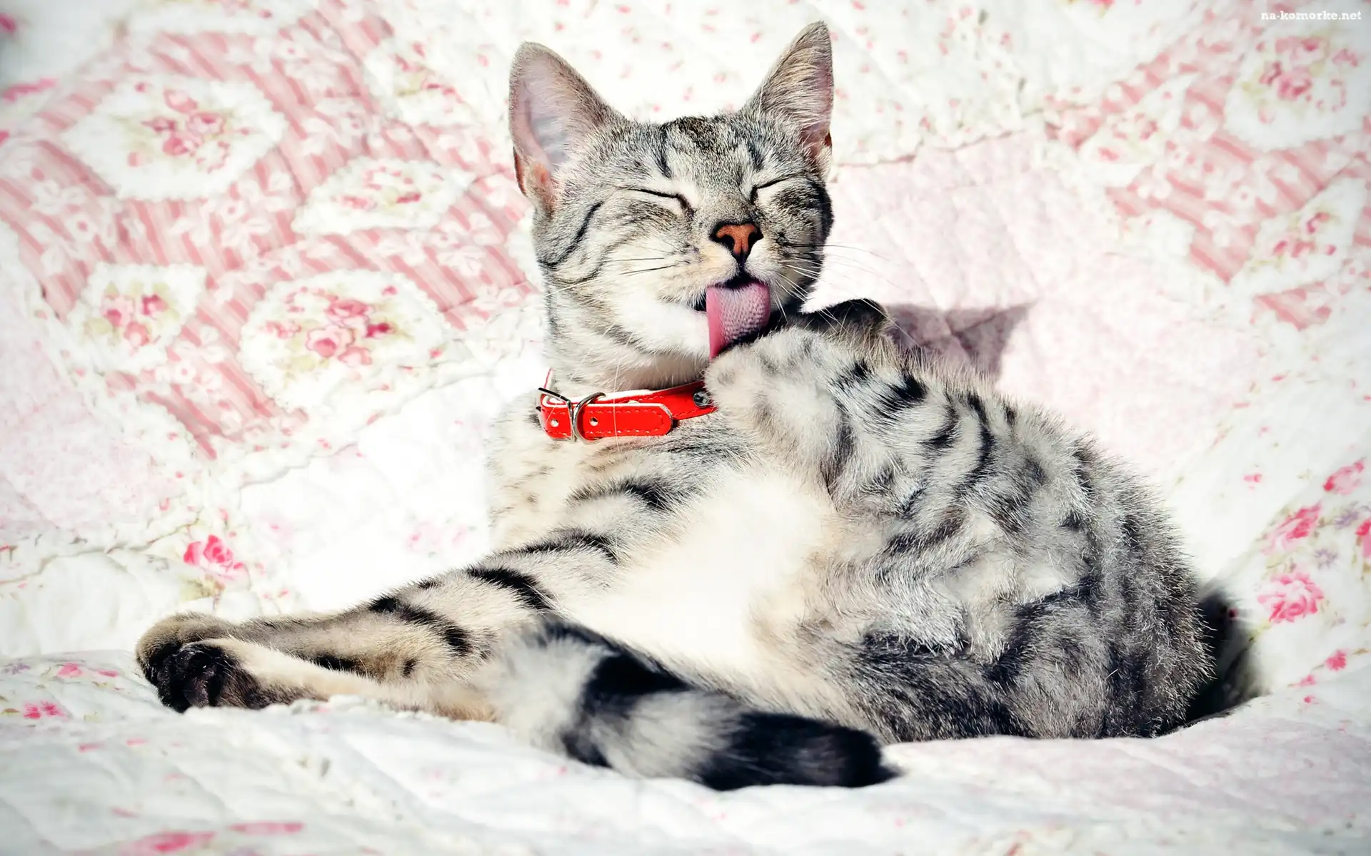 Posłanie, Język, Kot, Kąpiel na Komórkę