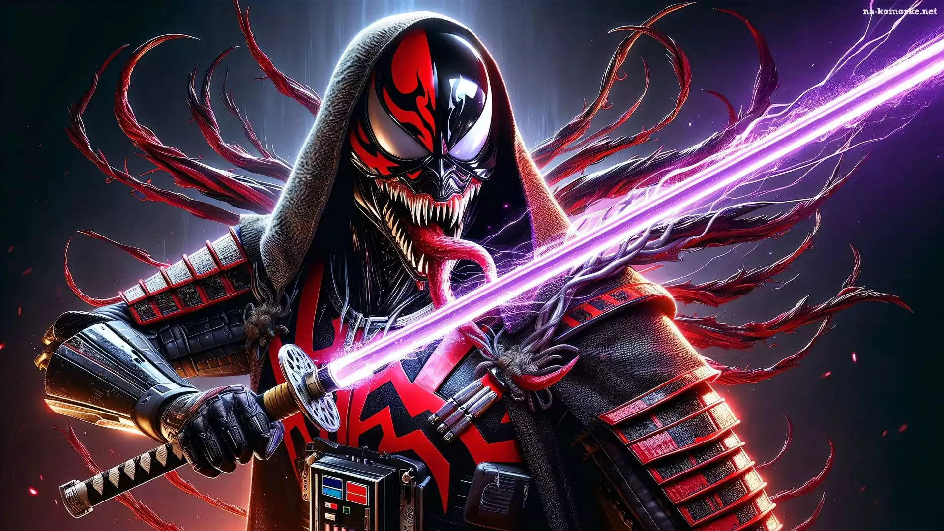 Płonący, Miecz, Darth Venom, Grafika, Zbroja, Maska, Postać na Komórkę