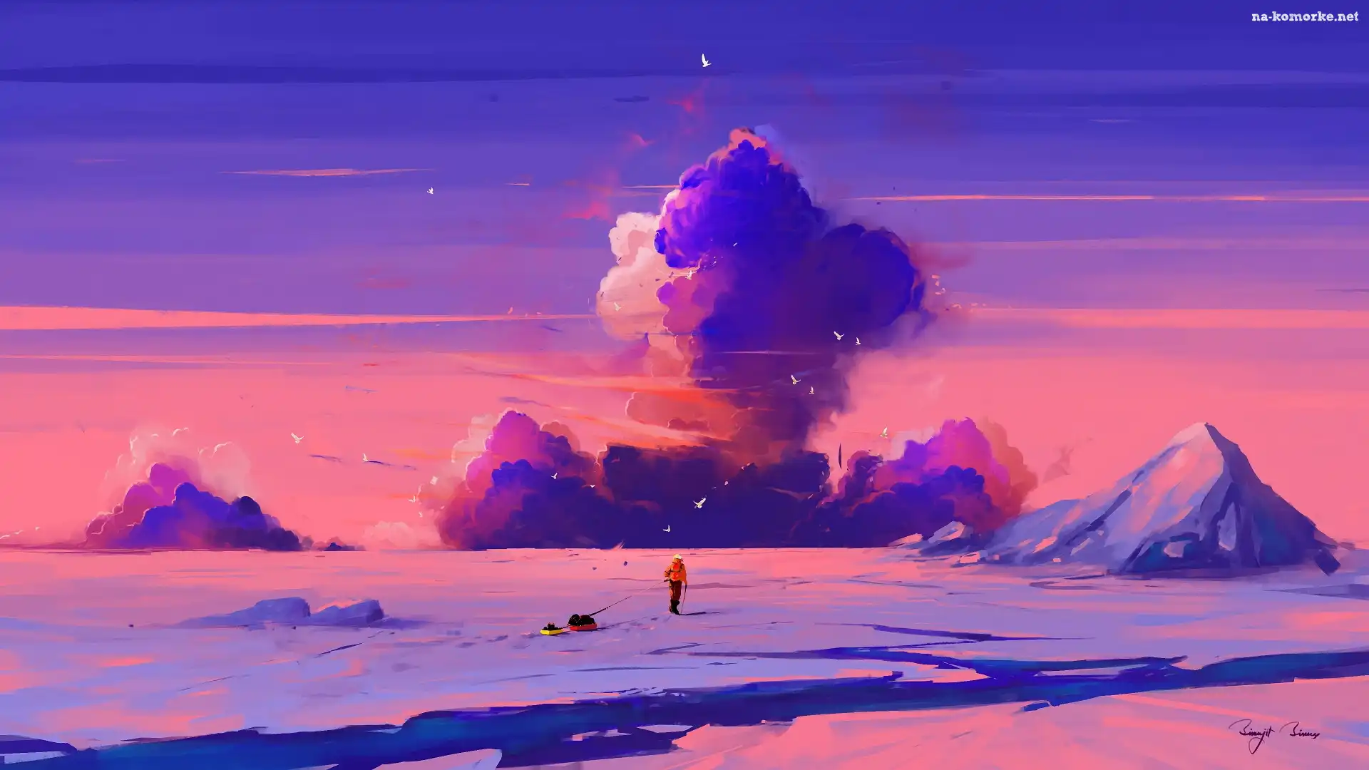Postać, Grafika, Zima, Góry, Chmury na Komórkę