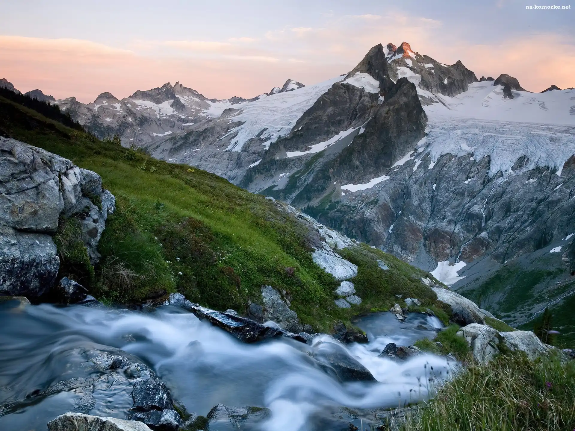 Potoczek, Gory, Śnieg, Trawa, Górski na Komórkę