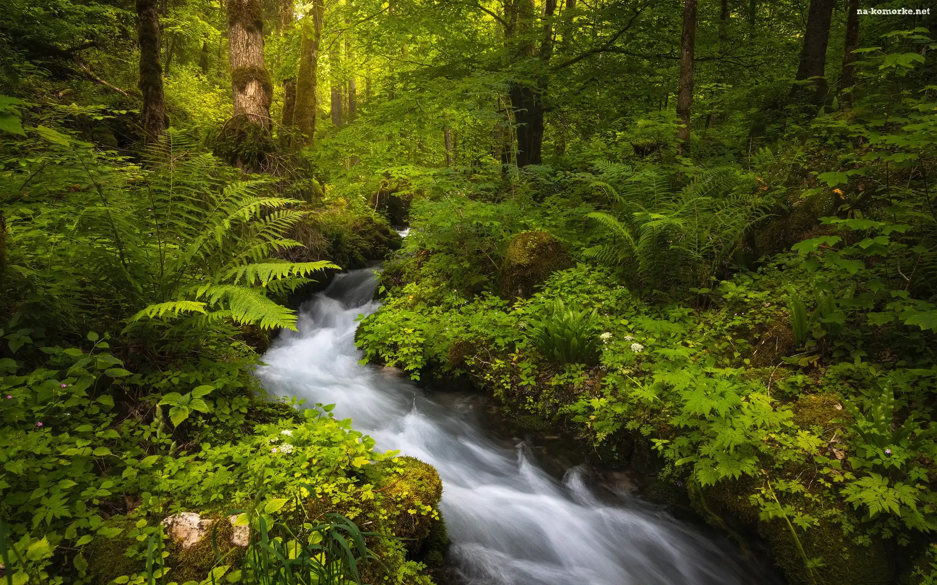 Las, Potok, Paprocie, Drzewa, Krzewy na Komórkę