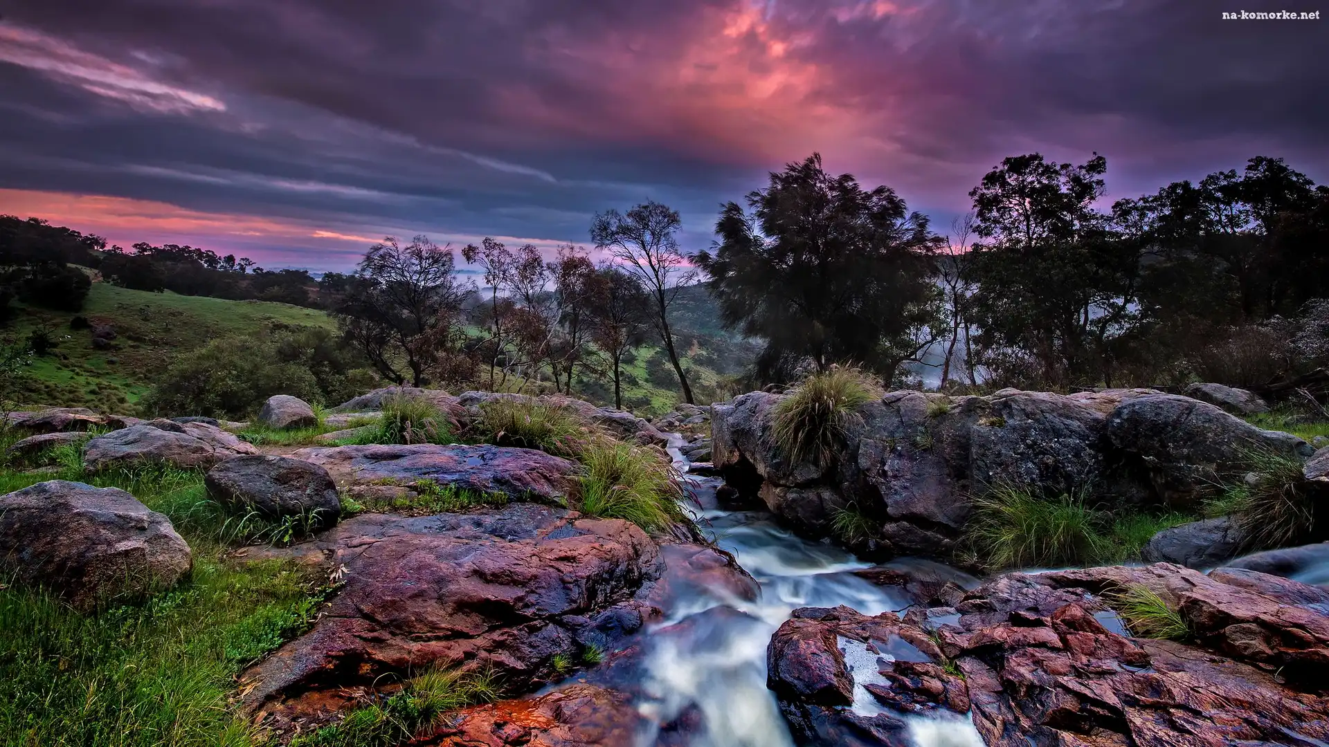 Potok, Drzewa, Skały, Chmury, Rzeczka, Ciemne na Komórkę