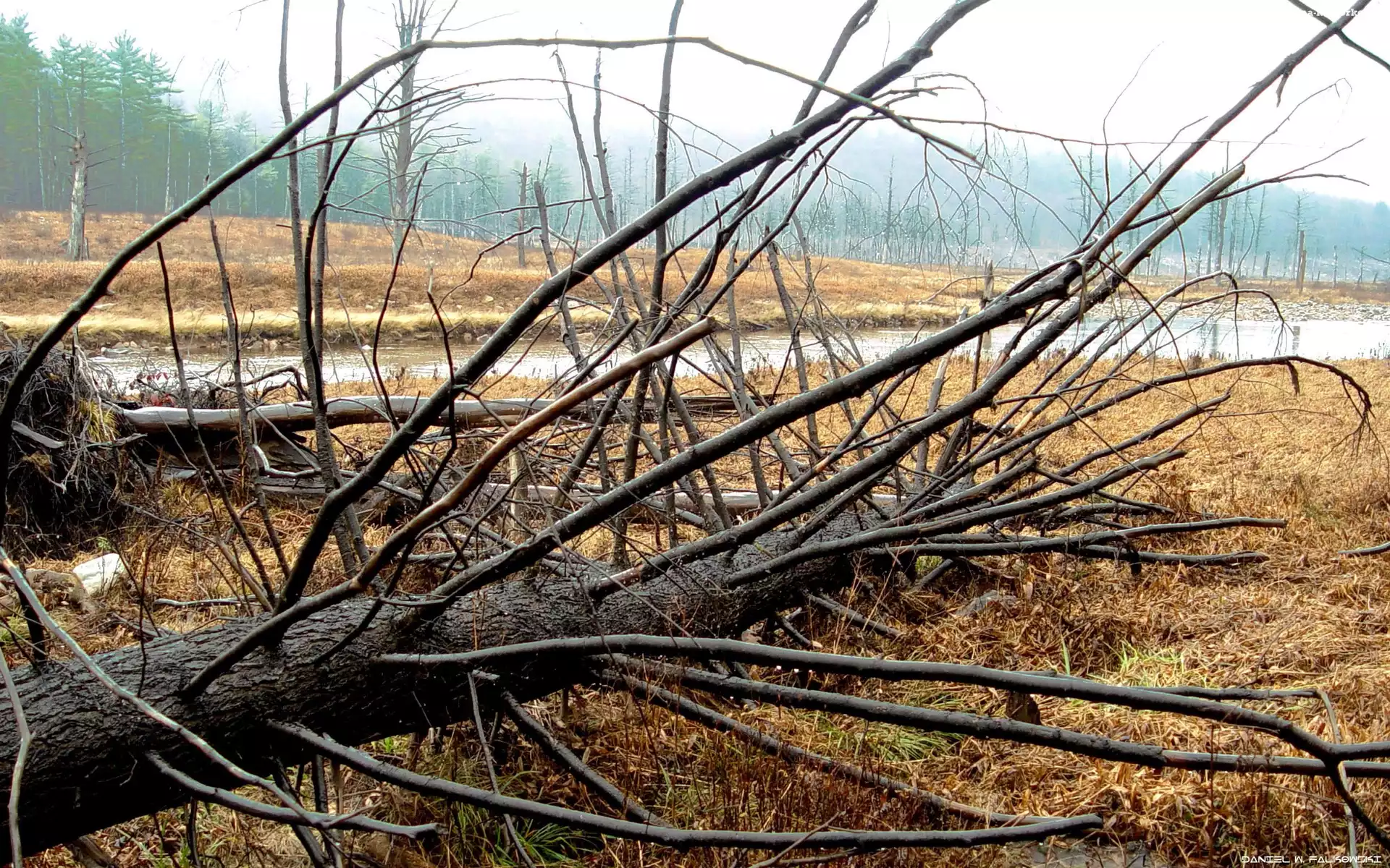 Powalone, Rzeka, Drzewo, Łąka na Komórkę