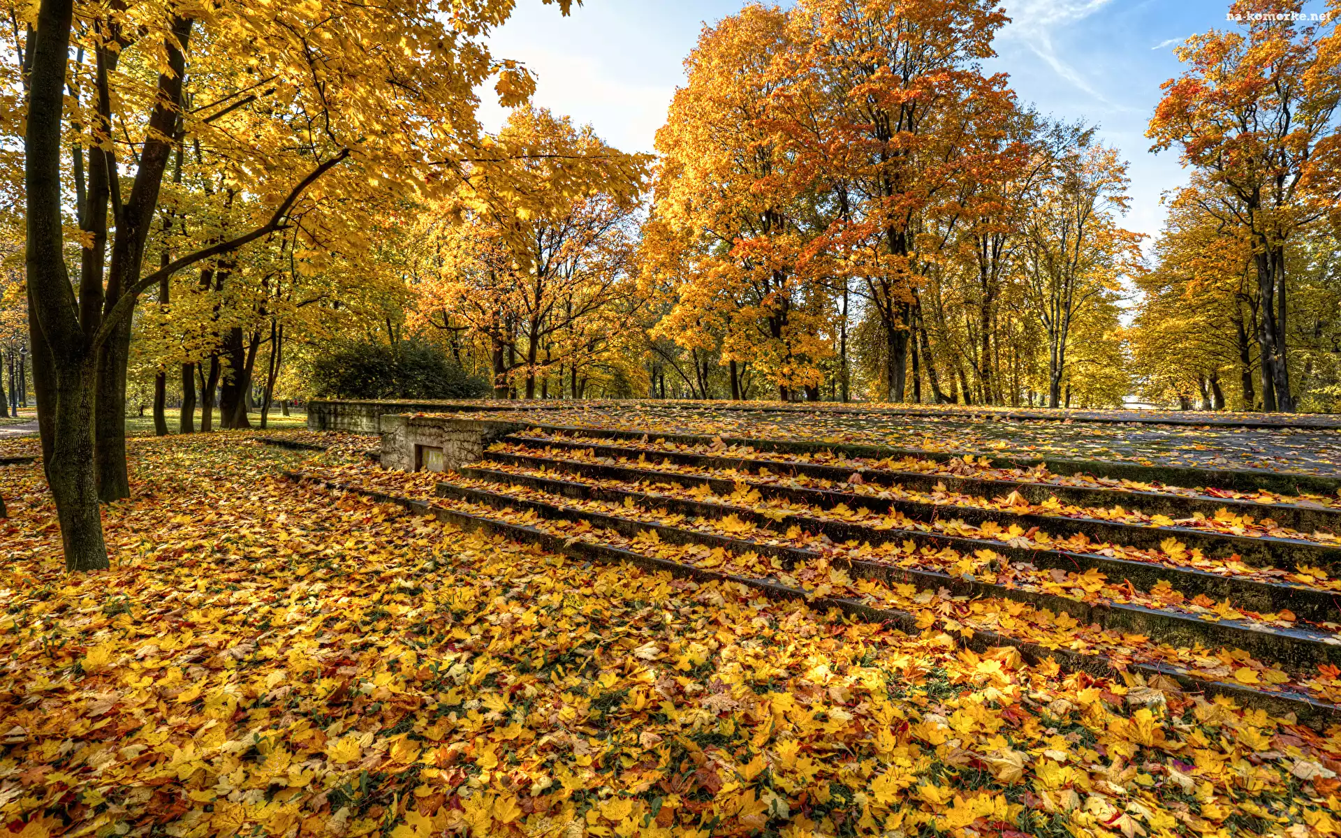 Pożółkłe, Drzewa, Park, Jesień, Schody, Liście na Komórkę