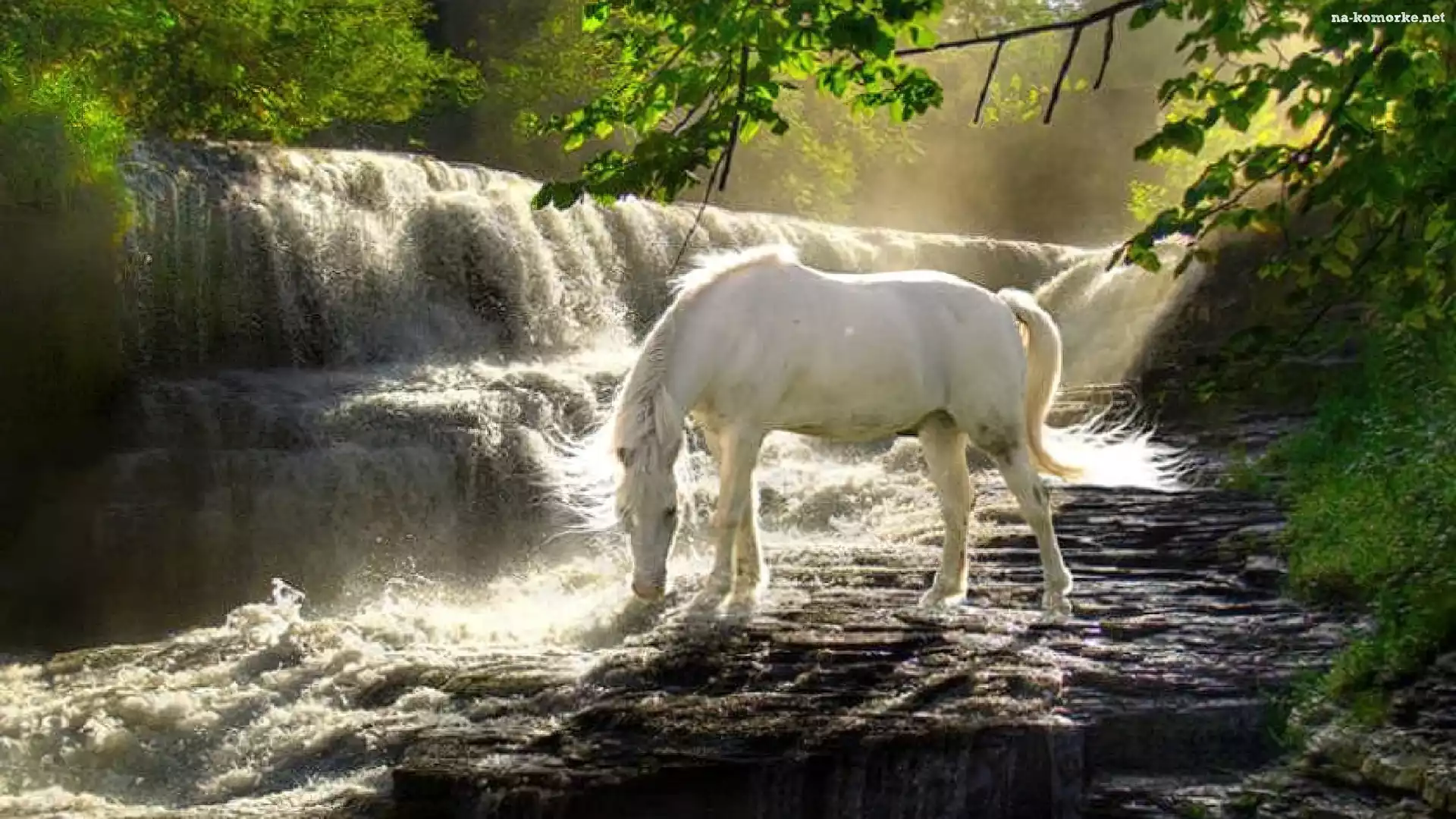 Pragnienie, Koń, Biały, Wodospad, Las na Komórkę