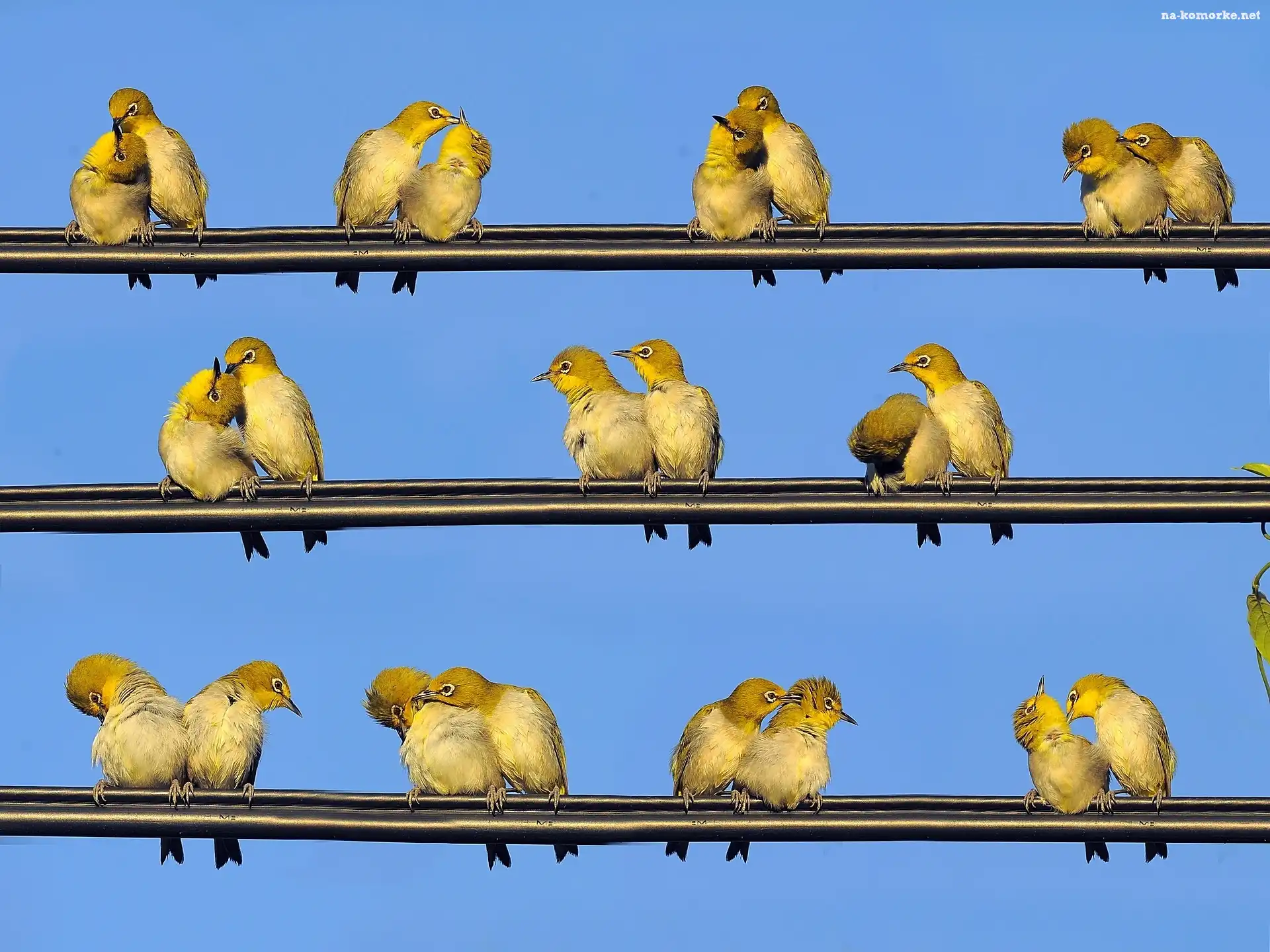 Pręty, Żółte, Ptaszki, Gody, Metalowe na Komórkę