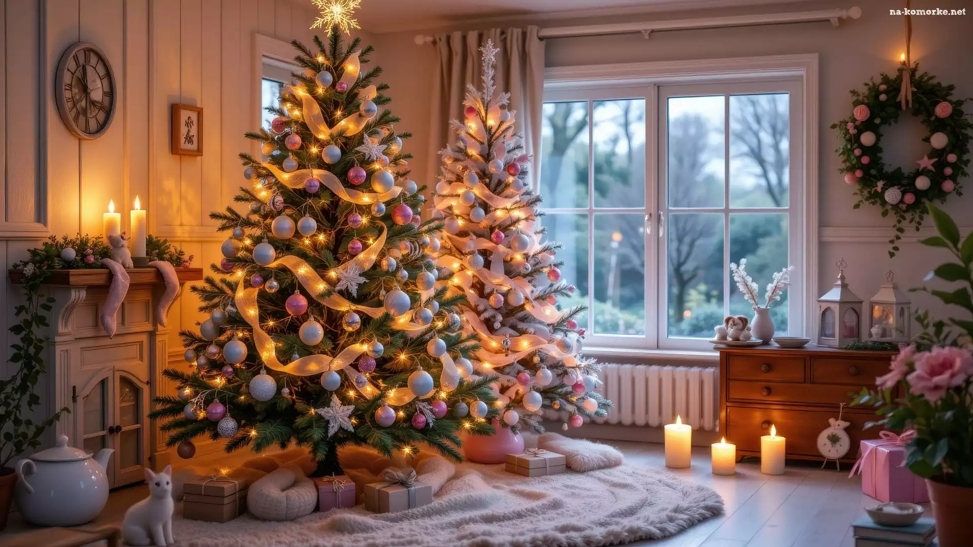 Bombki, Salon, Choinki, Prezenty, Dwie, Boże Narodzenie na Komórkę