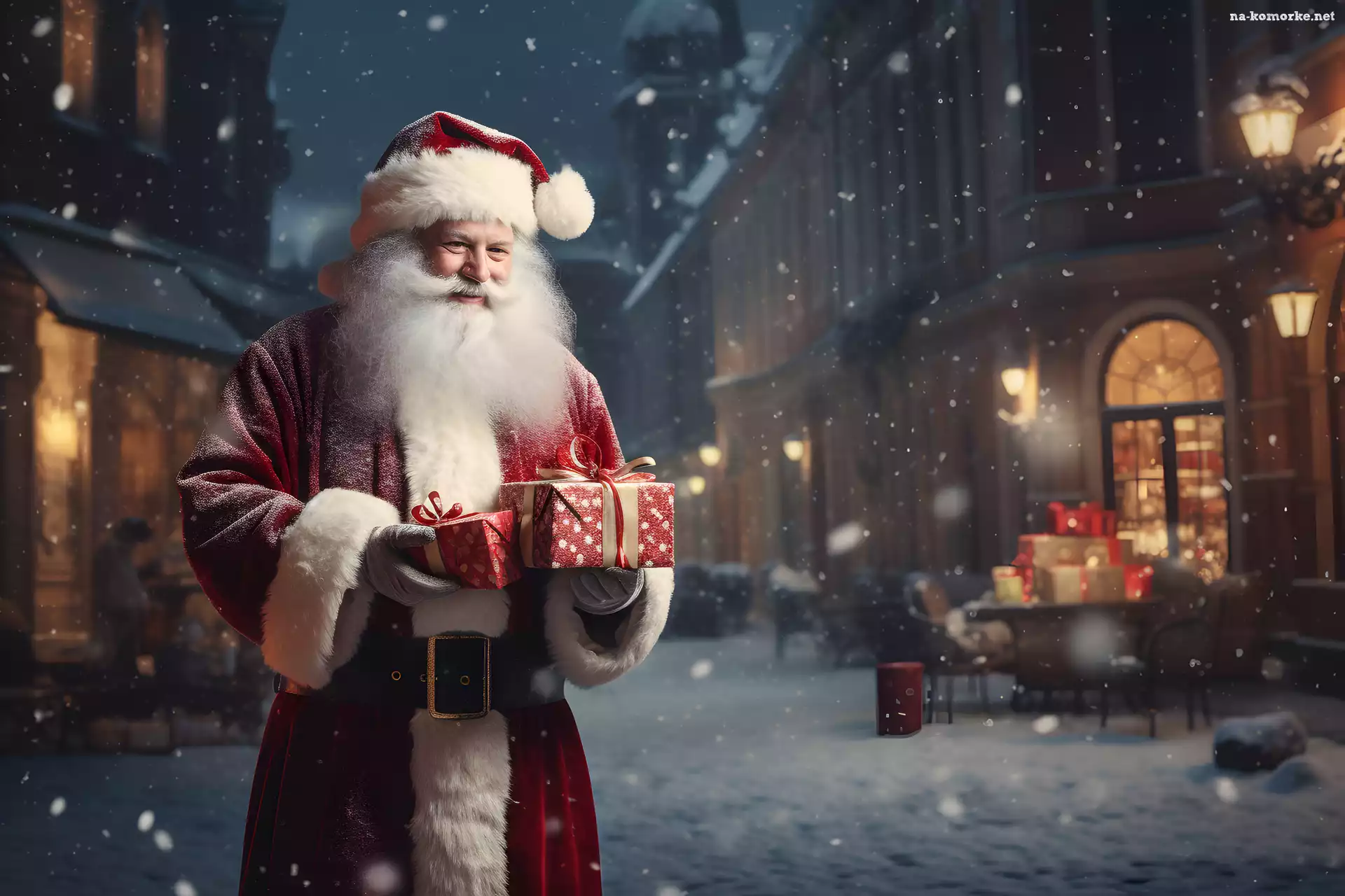 Zima, Prezenty, Ulica, Mikołaj, Domy na Komórkę