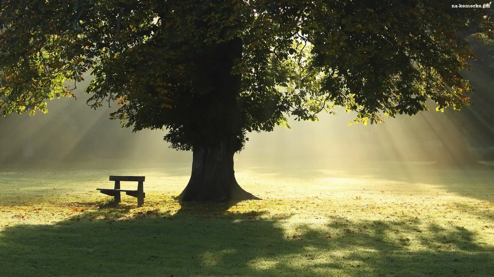 Ławka, Drzewo, Promienie słońca na Komórkę