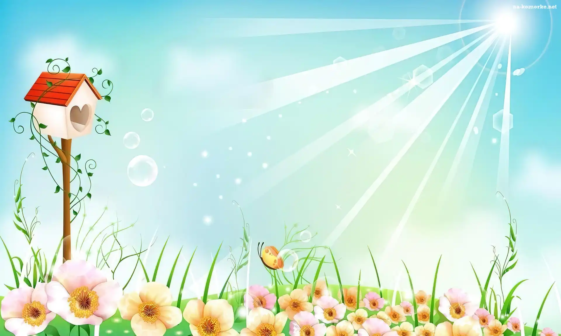 Promienie, Łąka, Kwiaty, Karmnik, Słońce na Komórkę
