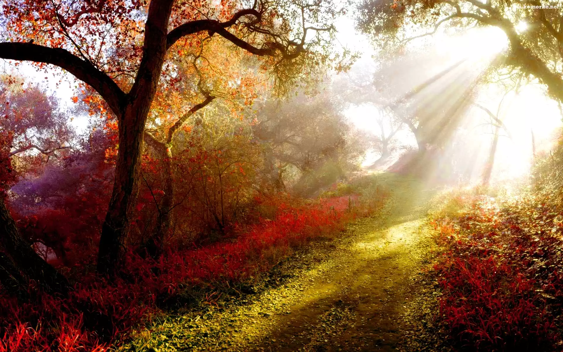 Promienie Słońca, Ścieżka, Kolorowe, Drzewa na Komórkę