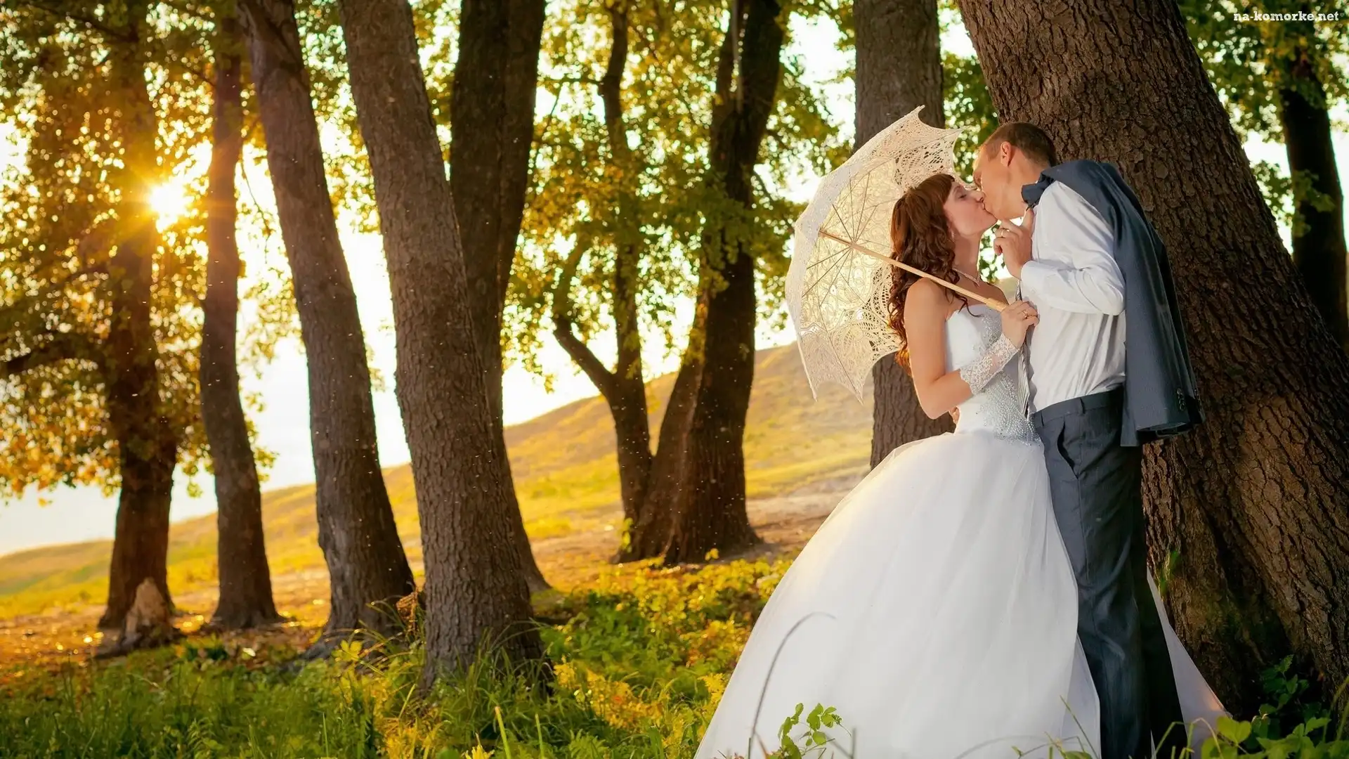 Promienie, Nowożeńców, Para, Jesień, Las, Słońca na Komórkę