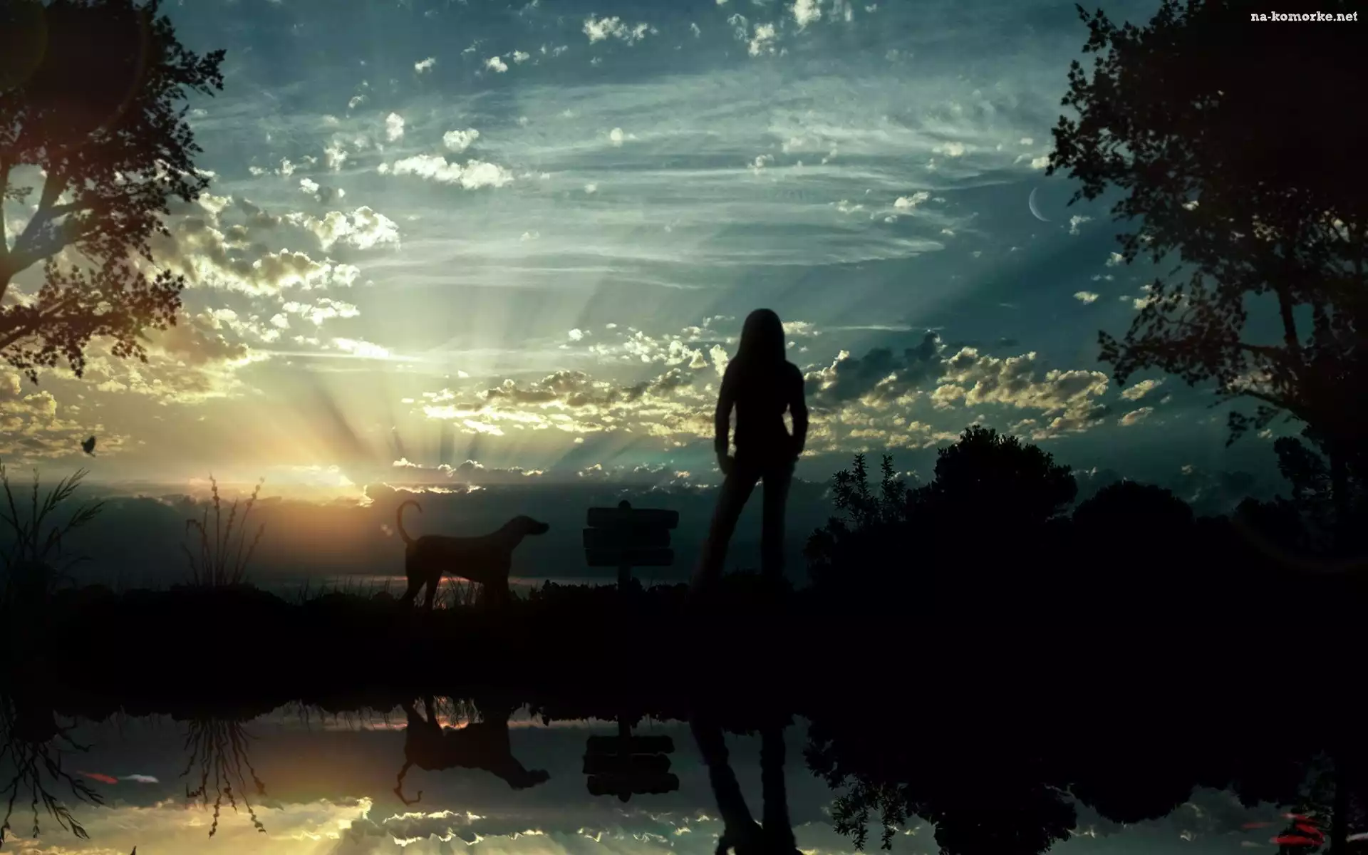 Promienie, Natura, Kobieta, Niebo, Pies, Światła na Komórkę