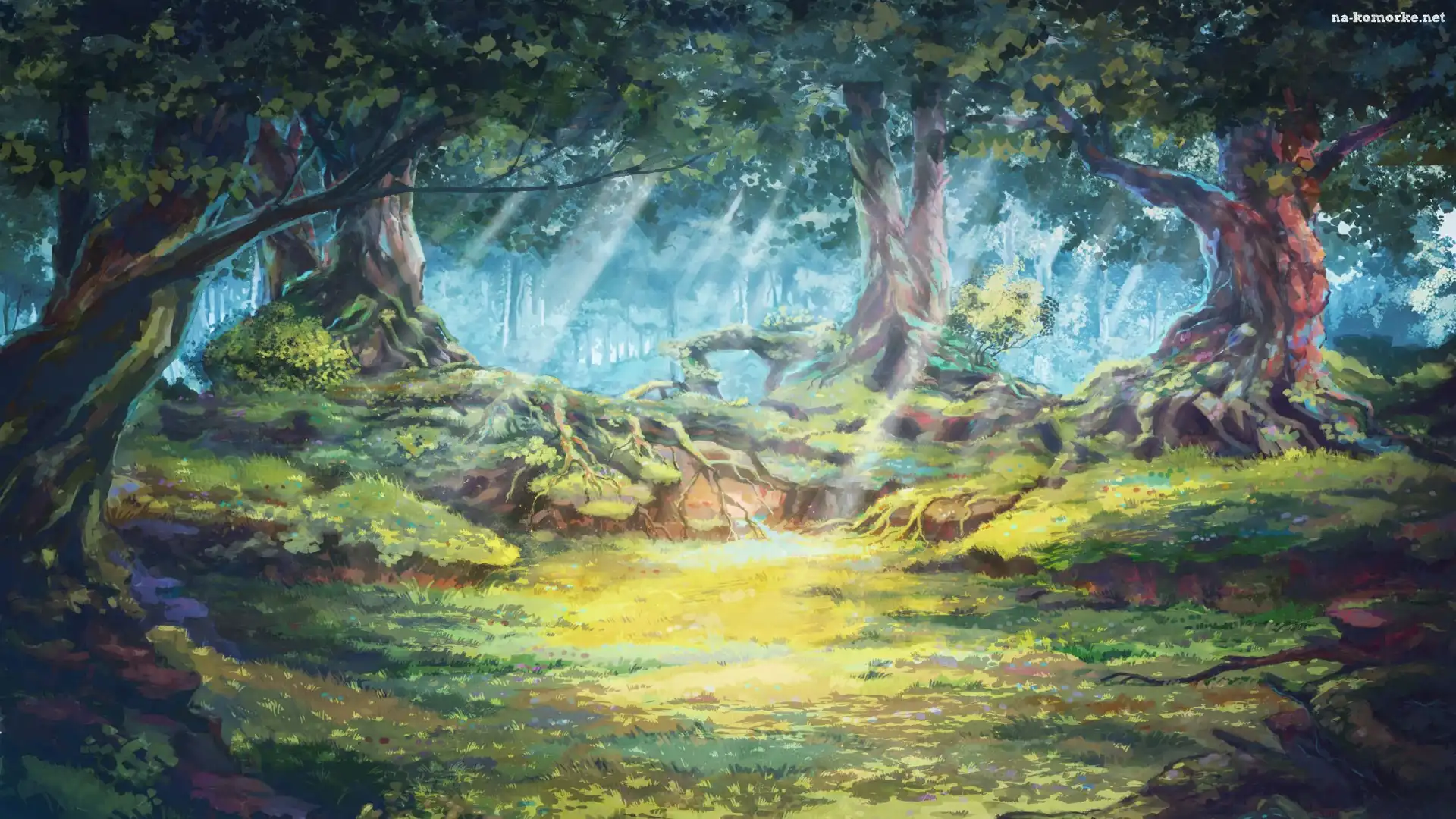 Polana, Promienie słońca, Grafika, Drzewa na Komórkę
