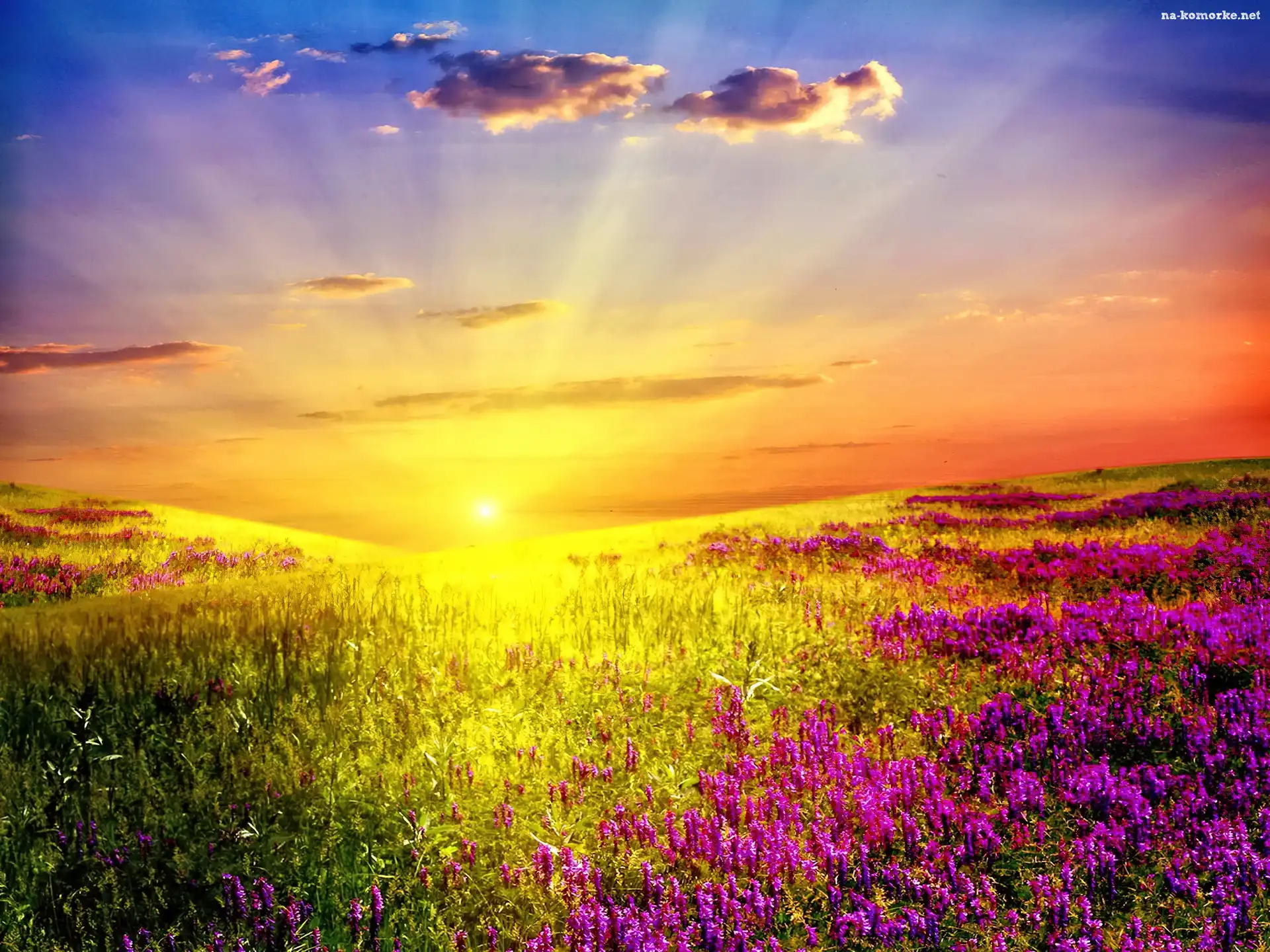 Promienie, Kwiaty, Słońca, Łąka na Komórkę