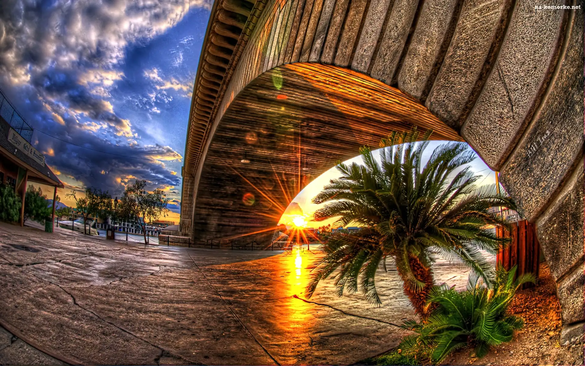 Promienie, Palmy, Słońca, Chmury na Komórkę