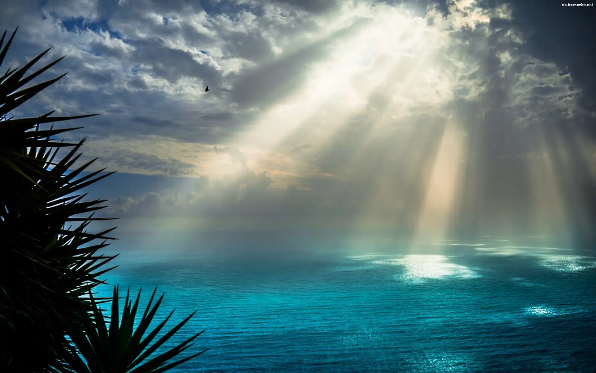 Promienie, Palmy, Słońca, Morze na Komórkę