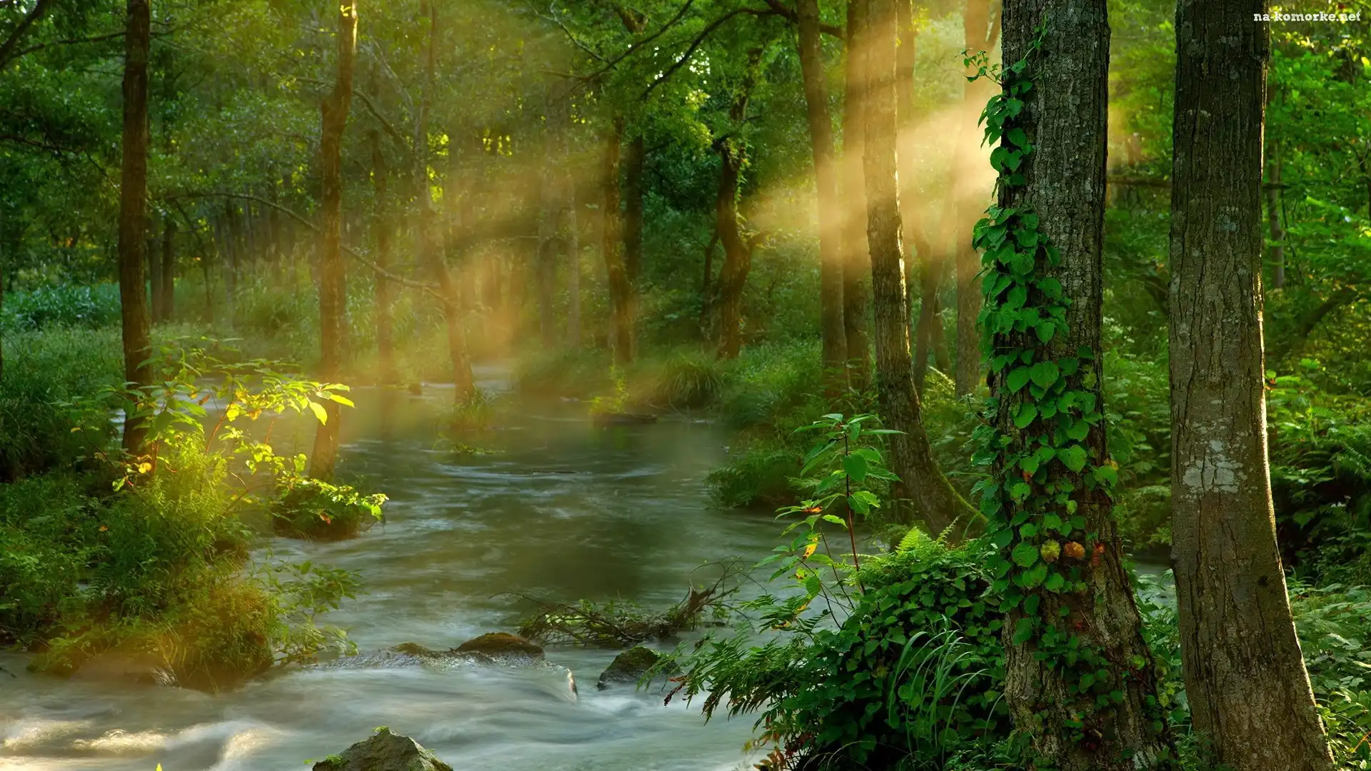 Promienie, Rzeka, Słońca, Las na Komórkę