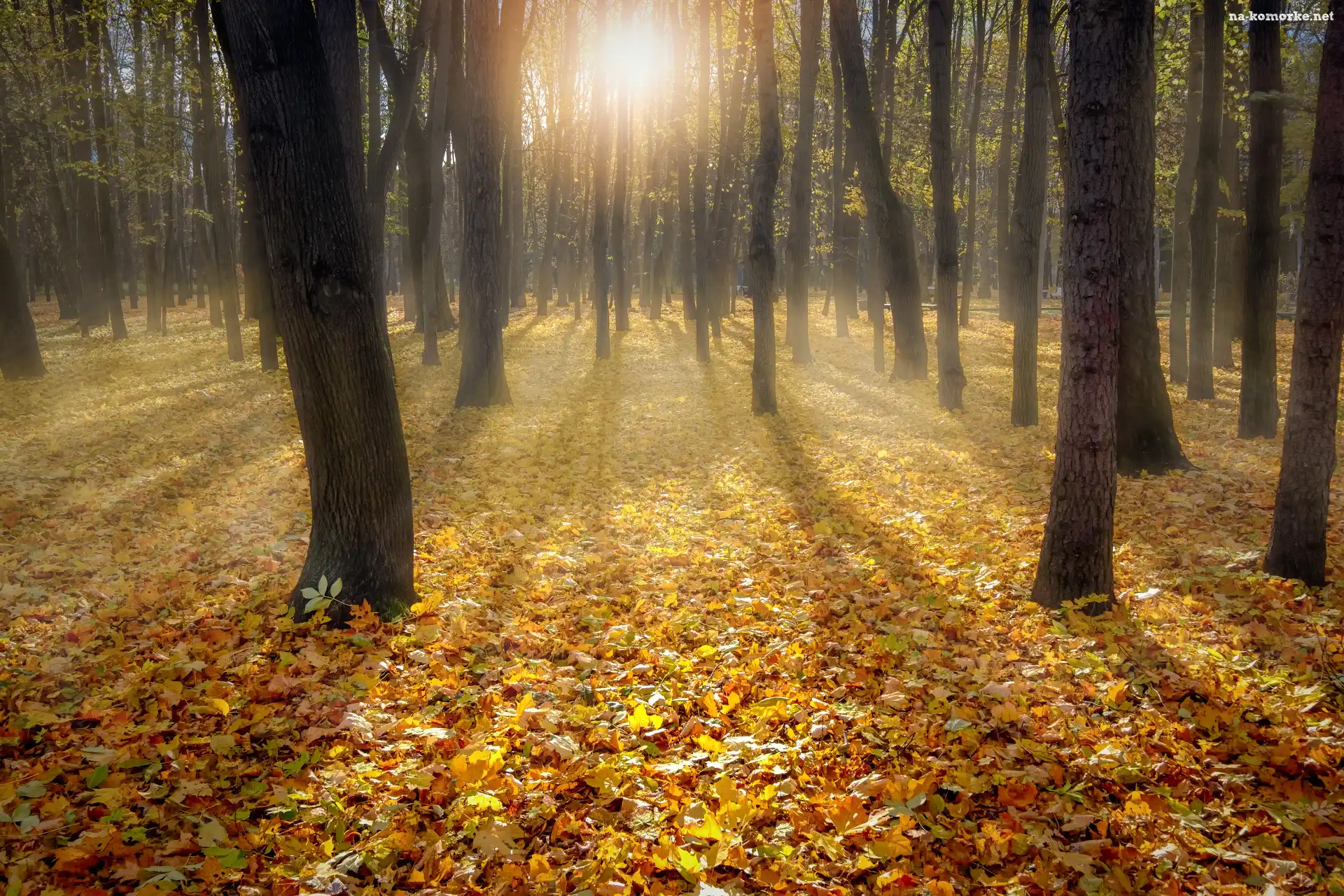 Przebijające światło, Las, Liście, Drzewa, Jesień na Komórkę