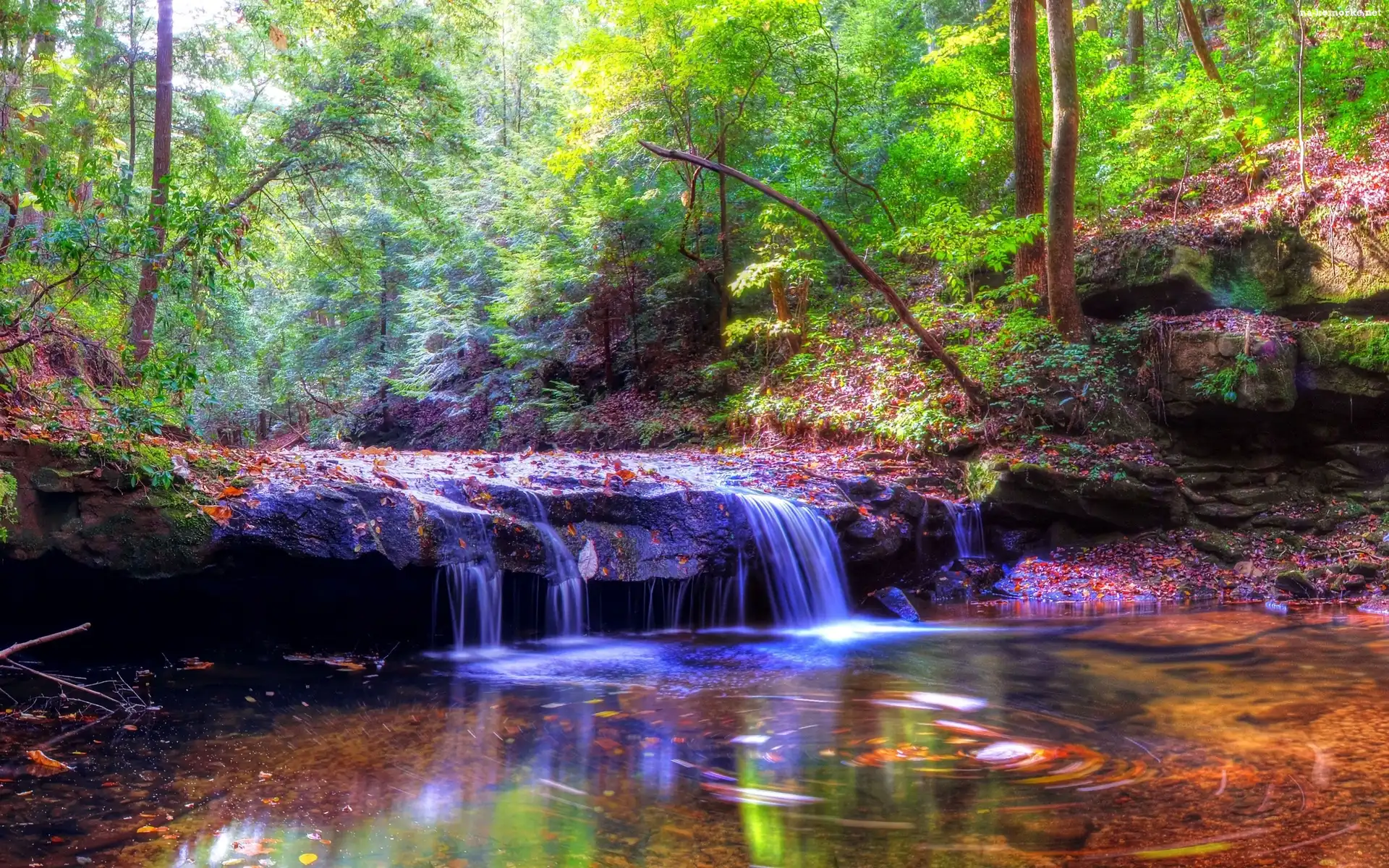 Przebijające, Skały, Wodospad, Jesień, Las, Światło na Komórkę