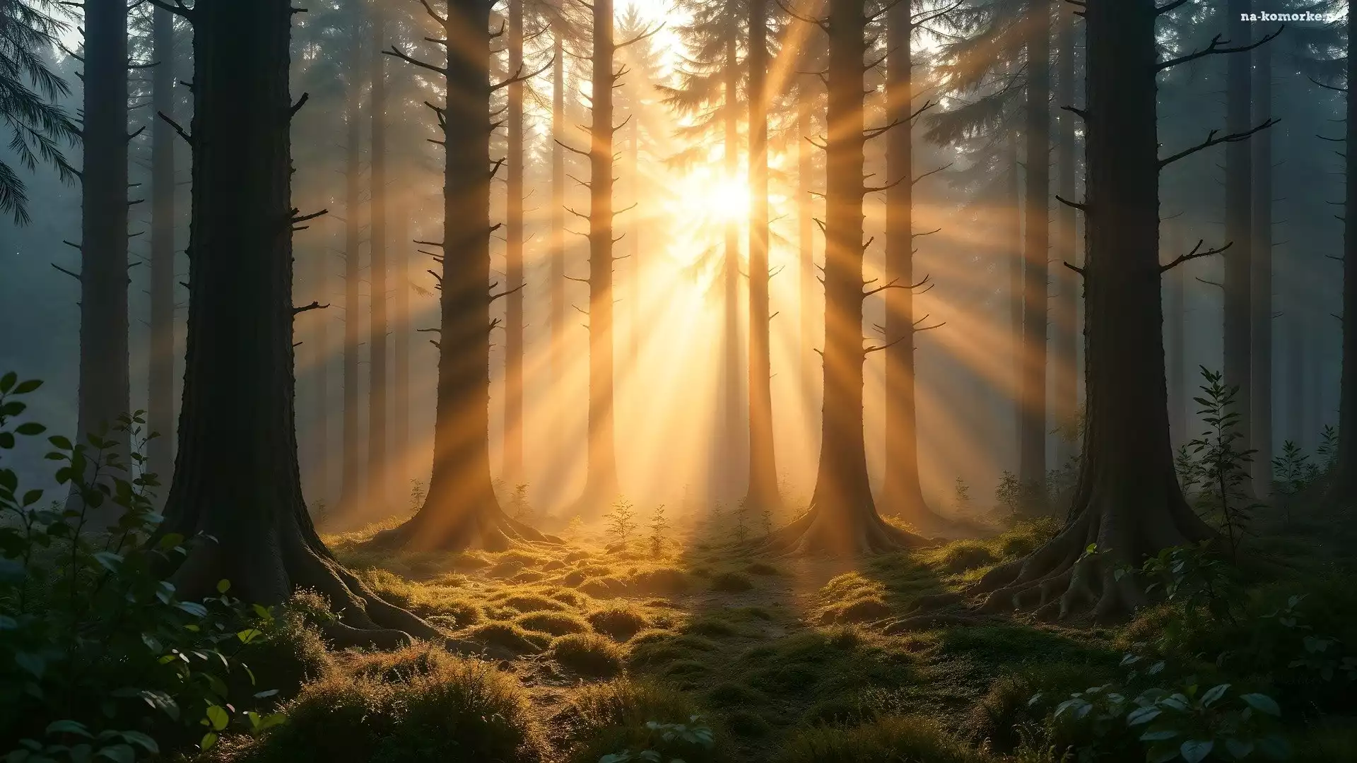 Mgła, Przebijające światło, Las, Drzewa na Komórkę